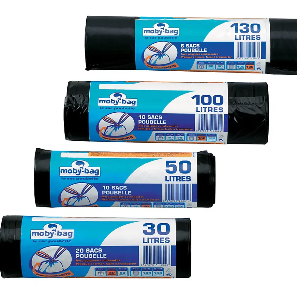 Lot de 10 sacs poubelle à poignée Dart. 100 Litres. Coloris bleu.