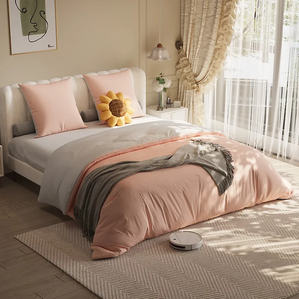 Parure de lit complète 4 pièces : profitez du confort d’une parure de lit complète comprenant 1 housse de couette, 1 drap-housse et 2 taies d’oreiller, conçue pour transformer votre espace de sommeil avec élégance et sophistication.Draps de couleur pure pour lit double et grand lit : conçus à la perfection dans une gamme de teintes pures et unies, ces draps pour lit double et grand lit offrent un charme rustique intemporel qui complète parfaitement les intérieurs minimalistes et modernes.Literie de luxe de qualité hôtelière : découvrez l’opulence de la literie de style hôtel directement à la maison. Nos draps sont conçus pour offrir la même sensation de luxe, assurant des nuits reposantes et une touche d’élégance chaque jour.Tissu respirant, doux et soyeux : fabriqué à partir de matériaux de qualité supérieure, notre parure de lit est incroyablement respirante, douce au toucher et a une finition lisse et soyeuse. Idéal pour toutes les saisons, offrant un confort inégalé pour les femmes et les hommes.Design polyvalent pour tout environnement : convient à divers espaces de vie, qu’il s’agisse de votre maison confortable, d’un dortoir, d’une suite d’hôtel ou d’une maison d’habitant. L’esthétique minimaliste et les palettes de couleurs pures en font un choix adaptable pour tout décor.