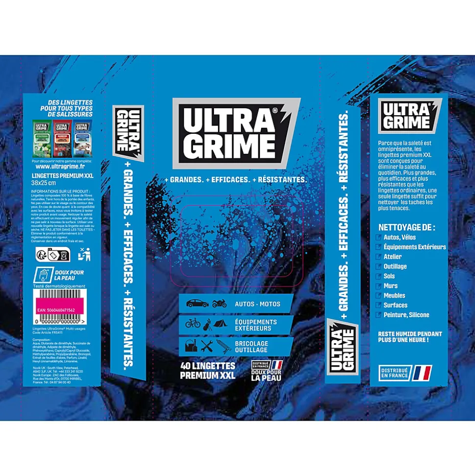 - Alors que la saleté est présente au quotidien, les lingettes Multi-usages de la marque UltraGrime® offrent un nettoyage de qualité professionnelle à la maison.