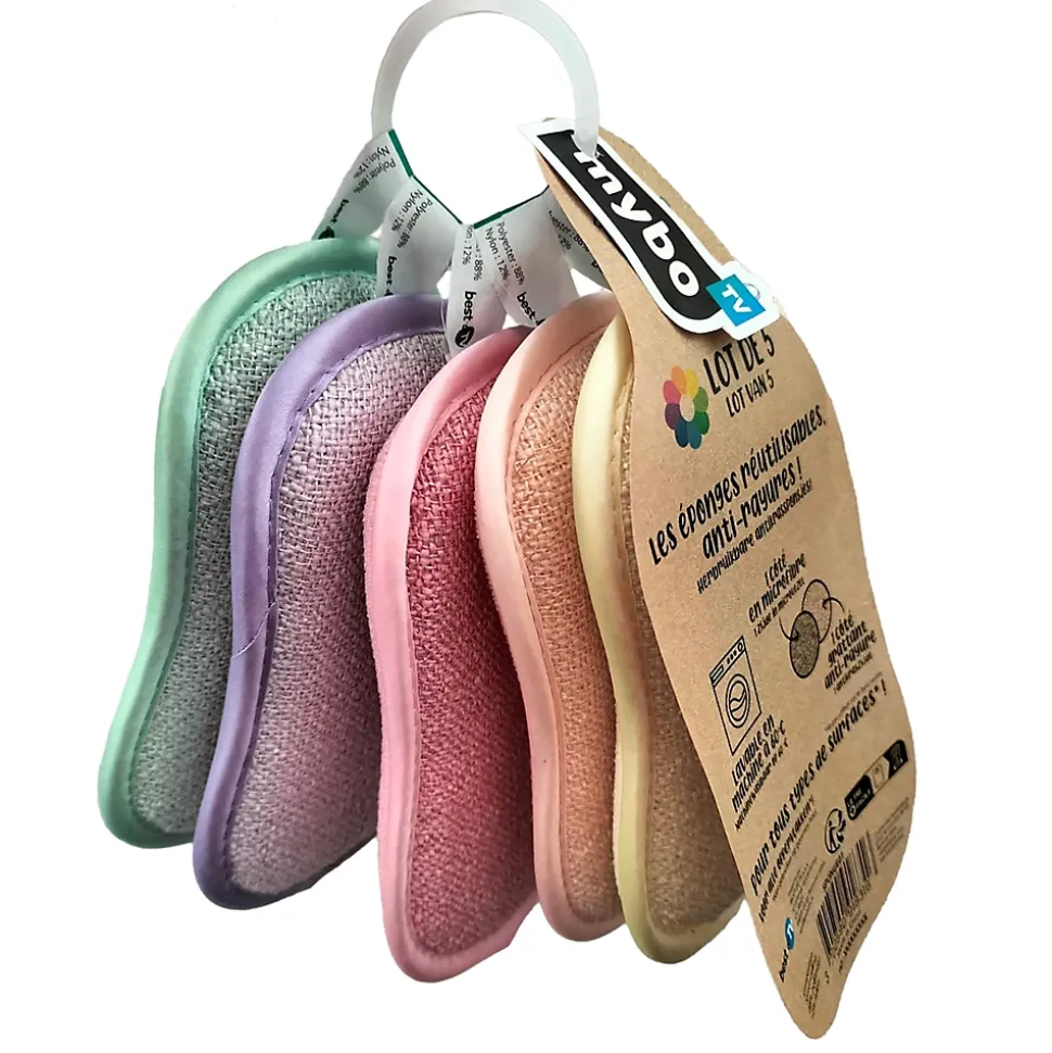 Les éponges lavables anti-rayures possèdent 2 faces pour un nettoyage toujours impeccable : une face grattante pour désincruster en profondeur et une autre plus douce en microfibre pour dégraisser délicatement. Le secret, c’est la technologie innovante en maille de nylon tressé, qui contrairement aux éponges traditionnelles, ne raye pas et respecte les surfaces. Cette éponge convient à tous les types de surface (sauf le bois vernis) et peut s’utiliser pour toutes les pièces de votre intérieur. Éponge cuisine, salon, salle de bain… elle est multitâches ! Certifiée Oeko Tex, cette éponge lavable en machine est conçue pour durer. Elle offre une alternative de qualité aux éponges jetables classiques tout en vous faisant faire des économies. Et après ça, un simple passage en machine et les revoilà opérationnelles ! Fini l’éponge sale remplie de microbes après une semaine, découvrez notre éponge lavable qui dure dans le temps ! Adaptée pour un passage en machine à 60°, elle est lavable plusieurs fois. Leurs utilisations sont sans limites, vous n’avez pas fini de les utiliser au quotidien.