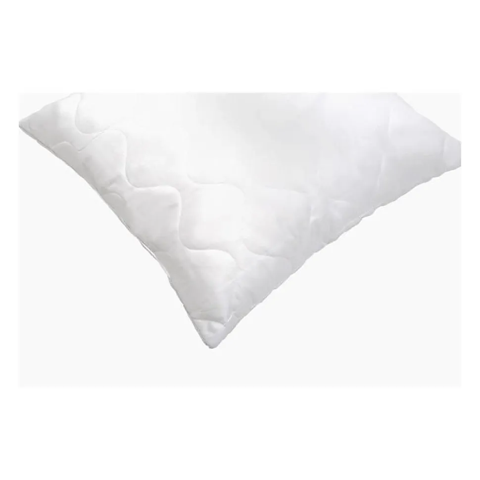 Oreiller à mémoire de forme matelassé en microfibre 100% polyester coloris blanc. Garnissage en mousse viscoélastique polyuréthane mémoire de forme pour un soutien optimal de la tête et du cou. Dimensions 60×60 cm, lavable à 90°C, certifié Oeko-Tex Plus.
