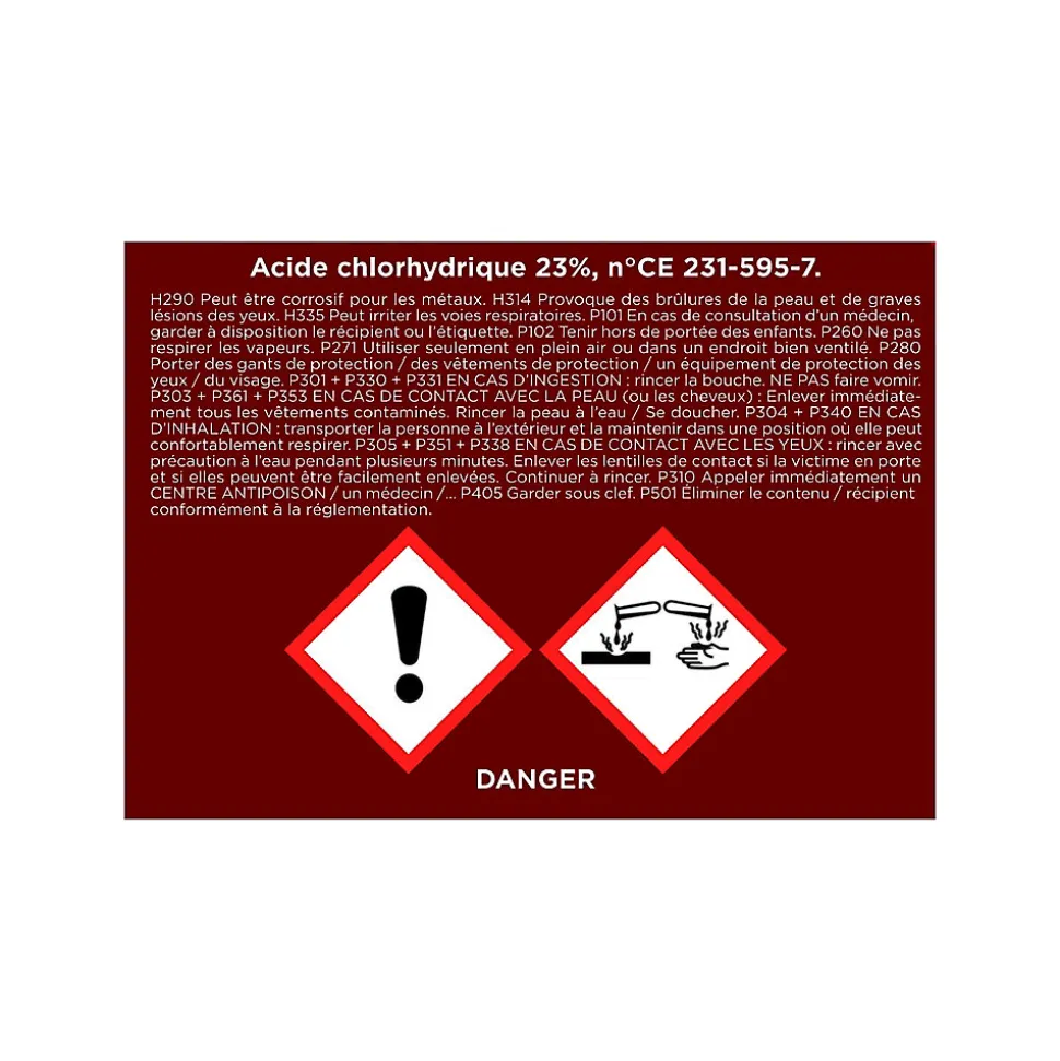 Acide chlorhydrique pour métal, carrelage, canalisations Onyx 5L