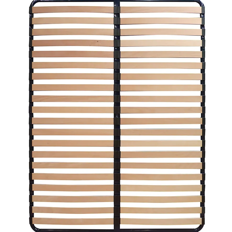 - Sommier composé de 2×20 lattes en bouleau multiplis largeur 53 mm, épaisseur 8 mm. Structure tube métal carré, laqué epoxy coloris bleu nuit.