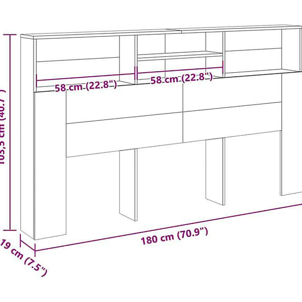 Cette armoire de tête de lit élégante donne à votre cadre de lit un aspect complet et s’adapte à n’importe quelle chambre à coucher. Matériau stable et durable : le bois d’ingénierie est un matériau durable et stable dont la surface lisse résiste à l’humidité, à la déformation et au fendillement, ce qui en fait un choix fiable pour une grande variété de projets.Grand espace de rangement : la tête de lit élégante est dotée de quatre compartiments pratiques, offrant suffisamment d’espace de rangement pour garder tous vos essentiels de nuit à portée de main.Peu encombrant : cette tête de lit bibliothèque est une option peu encombrante qui peut remplacer la table de chevet, ce qui permet d’optimiser l’espace de votre chambre à coucher et la rend idéale pour les espaces restreints ou limités.Facile à entretenir : grâce à sa surface lisse, la tête de lit de chambre à coucher est facile à nettoyer avec un chiffon humide et nécessite moins d’entretien. Attention :Pour éviter qu’il ne bascule, ce produit doit être utilisé avec le dispositif de fixation murale fourni.Couleur : vieux boisMatériau : bois d’ingénierieDimensions : 180 x 19 x 103,5 cm (P x l x H)Assemblage requis : ouiLegal Documents:Vous trouverez ici plus de détails sur la façon d’empêcher vos meubles de basculer