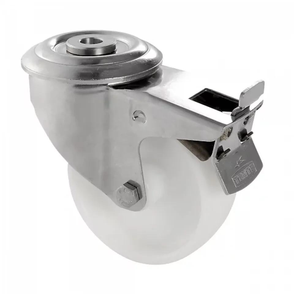 La solution économique pour déplacer simplement les bacs grands volumes. Roues et visseries Inox. Acier Inoxydable recommandé en environnements humides (aucune altération des roulements même en présence d’eau). Résistance à la charge donnée à titre indicatif (dépend de la répartition de la charge et de la température d’utilisation). Joints présents sur l’axe de fixation des roues pour une étanchéité parfaite. Le litrage indiqué correspond au bac rempli à ras bord. Si la charge du bac est importante (220 L, 310 L et 500 L) sur des grandes distances, privilégier la configuration roues mixtes pour une meilleure maniabilité ou les bacs + chariots.