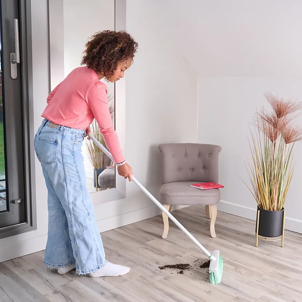 - Le balai pour nettoyage des sols est idéal pour balayer la maison : la cuisine, l’entrée, la chambre, le garage, la terrasse et le balcon