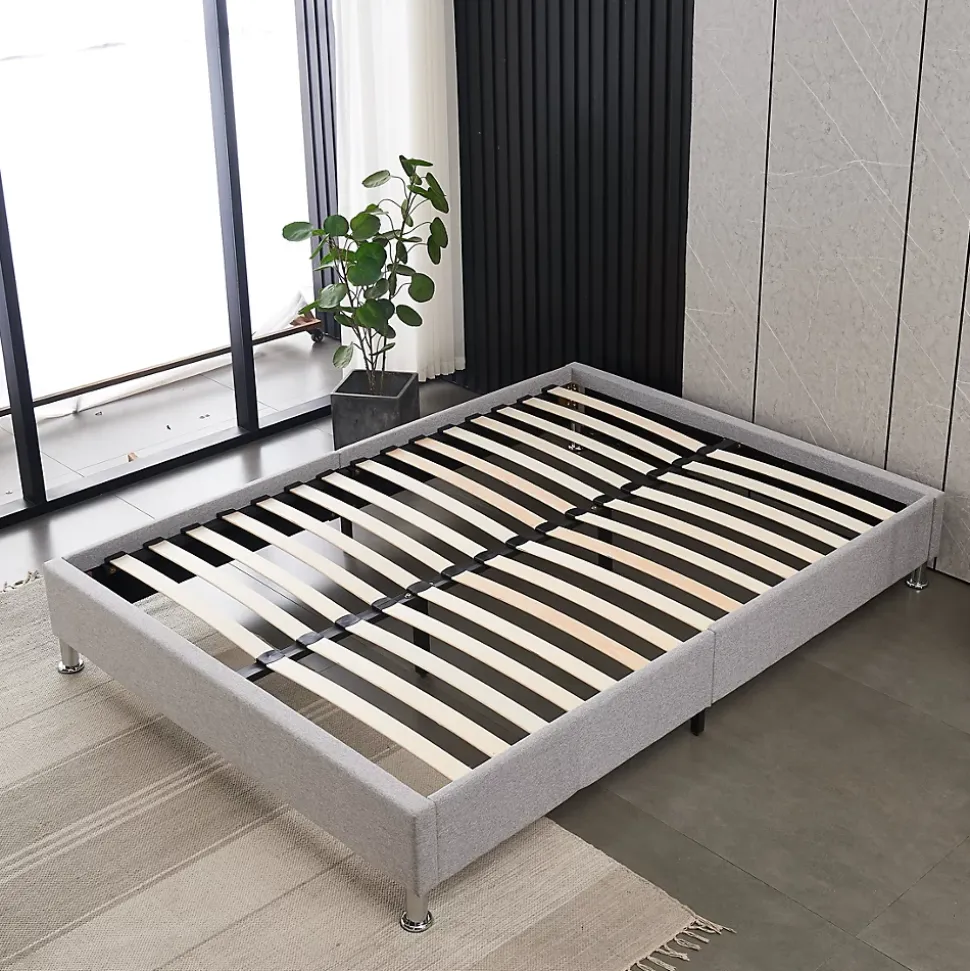 Description du produit:Caractéristiques : Durable et stableCouleur (teinte) : grisComposants inclus : pied de lit, lattes de litTaille:140x190cmQuantité de lattes pour lattes multicouches : 28 piècesMatériau des lattes : planche de boisFinition box Spring : coton et linEst-ce qu’il nécessite un assemblage : OuiHauteur du sol au cadre de lit : 31 cmTaille de l’emballage: 150,5x22x34cmPoids de l’emballage : 25,8 kgLivré en kit en un seul carton & livré avec notice de montage.