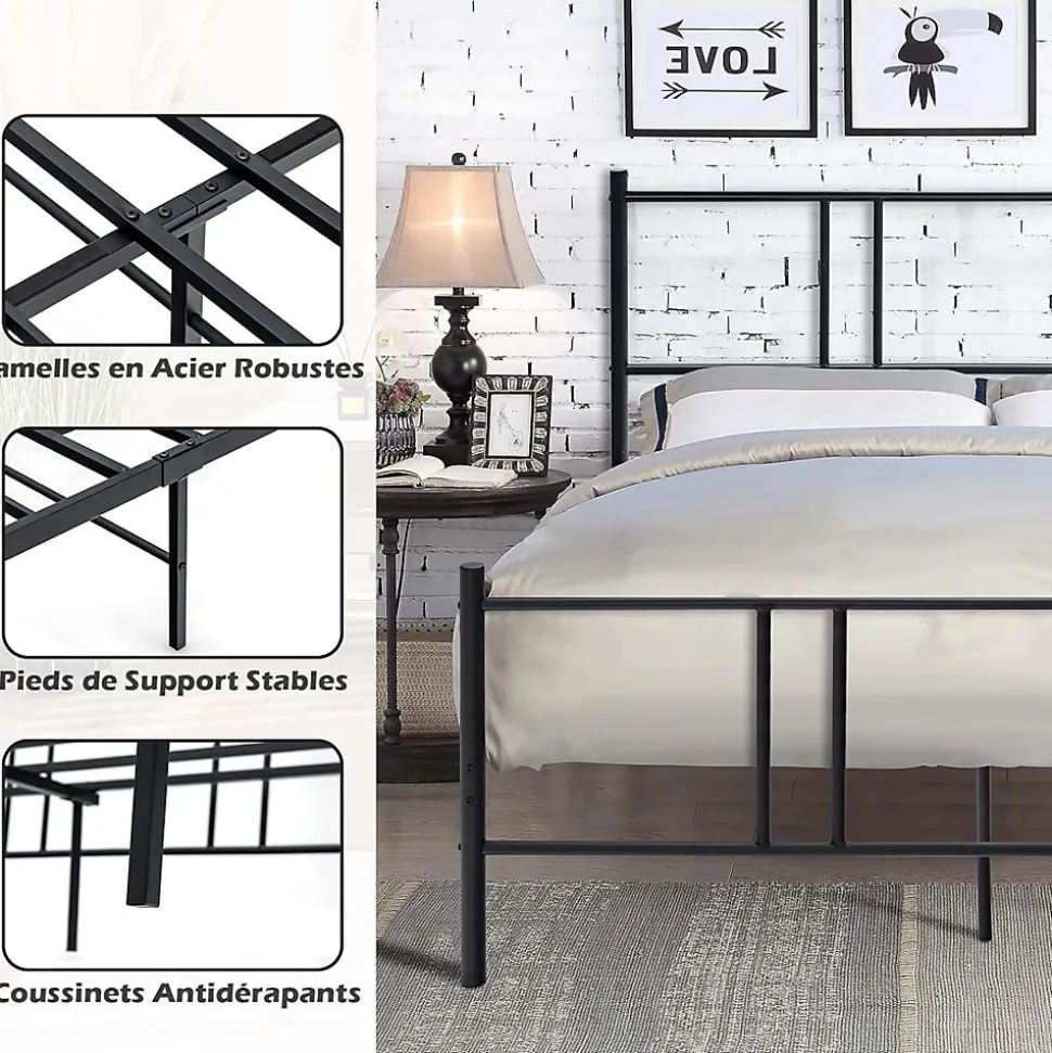 - Sommeil doux et confortable : Notre cadre de lit métallique dispose de 10 lattes en acier robuste, ce qui permet à ce meuble de ne pas vaciller ou craquer lorsque vous roulez dessus. En outre, la barre anti-bruit aide à réduire la friction entre les lattes et le cadre afin d’assurer un sommeil doux et profond.