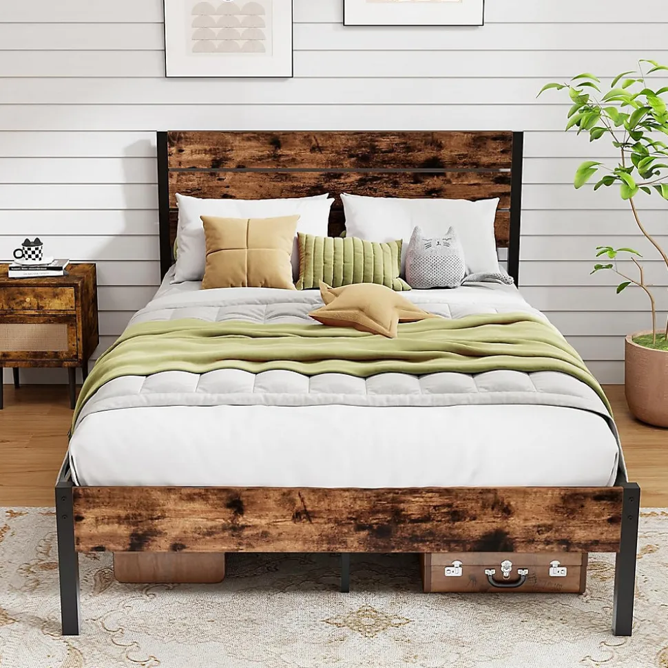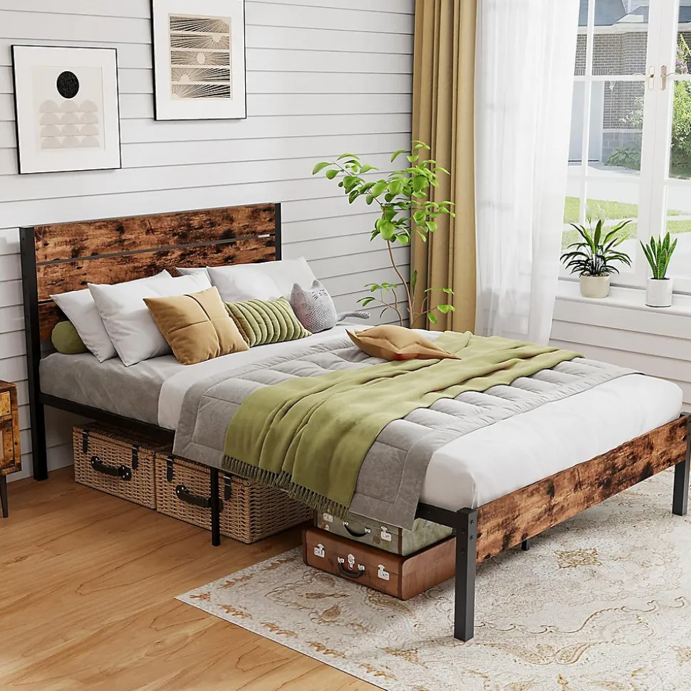 - Style Industriel Rustique de la Tête de Lit : Élevez votre chambre avec le design élégant de la tête de lit en bois et le cadre en métal sophistiqué. Les détails en faux grain de bois ajoutent une touche de charme industriel, créant une pièce maîtresse élégante pour toute décoration de chambre.