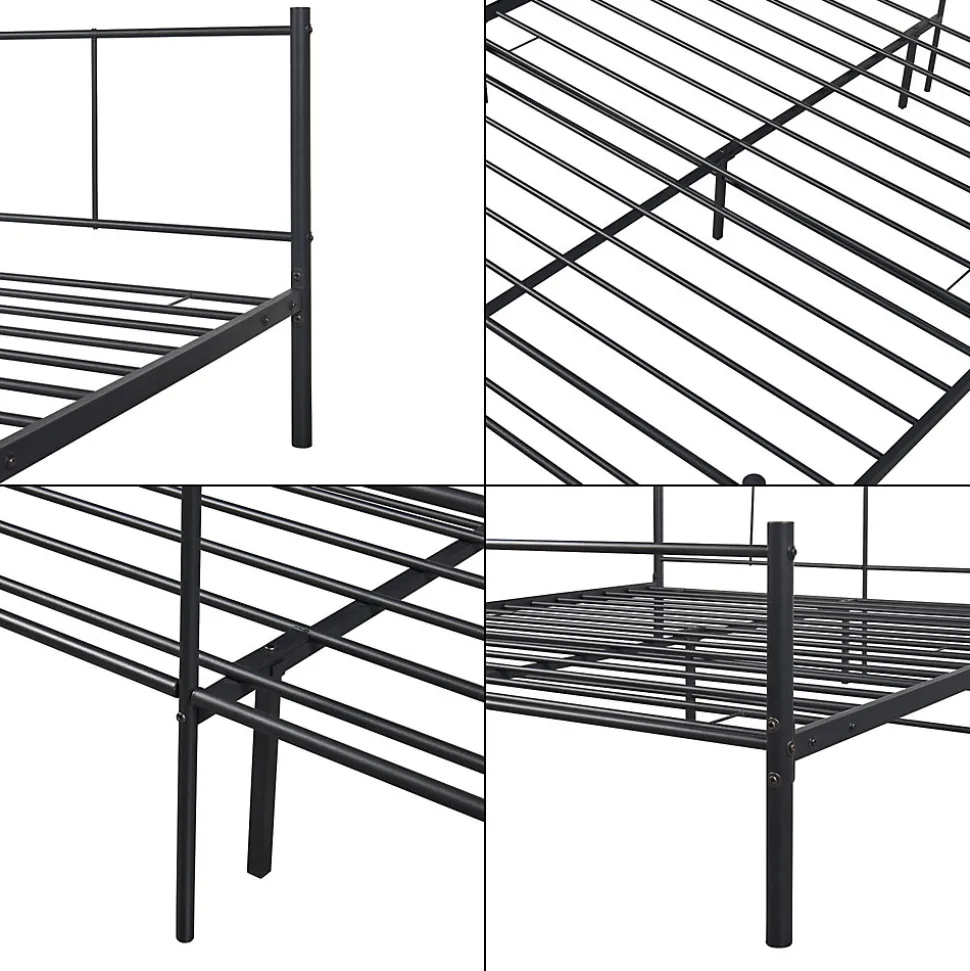 - Ce cadre de lit en métal est une construction pratique et solide. Doté des lattes métalliques, il vous offre un support optimal et assure le confort durant le sommeil.