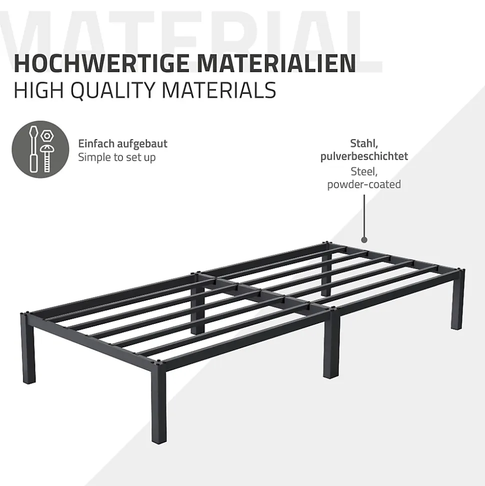Le cadre de lit élégant de ML-Design est idéal pour votre chambre à coucher. Le design moderne s’adapte très bien à tout intérieur déjà existant. Grâce à sa finition de haute qualité, la construction est très robuste et durable. Les lattes pratiques offrent la stabilité nécessaire et sont très confortables.Le cadre de lit est très facile à monter et à entretenir. Le sommier à lattes fourni est également facile et rapide à monter. Commandez donc dès maintenant ce magnifique lit de ML-Design pour pouvoir dormir tranquillement la nuit.Caractéristiques du litDesign moderneFacile à monterGrand confort de couchageSommier à lattes fourniPieds avec protections de solConstruction robusteCadre de lit élégant de ML-Design Caractéristiques du matelasConvient aux personnes allergiquesParfait pour le lit de votre enfantMousse froide de haute qualitéPositionnement sain des parties du corpsSoutien optimal quelle que soit la position de sommeilLa housse extérieure est piquée par ultrasons, sans fils, pour retarder la pénétration des liquides.RespirantRésistant à l’usureDesign moderne Livraison1x Cadre de lit avec sommier à lattes1x Matériel de montage1x Matelas en mousse froide Information technique:LitMatériau du cadre et du sommier: cadre en acier, revêtu par poudreCouleur: anthraciteDimensions (LxlxH): environ 200 x 90 x 31 cmDimensions de la surface de couchage (Lxl): environ 200 x 90 cmDimensions des lattes (LxH): environ 2 x 2 cmDimensions des pieds (LxlxH): 4 x 4 x 31 cmDimensions du cadre (LxH): environ 2 x 4 cmPoids: environ 10,9 kgCapacité max. de charge: 150 kg MatelasMatériau de la housse: 100% polyesterMatériau: mousse froideDimensions (LxlxH): environ 200 x 90 x 10 cmDensité: 23kg/m³Dureté: 4,2 kPaAllergique: convientHousse amovible: ouiCertification: Oeko-Tex Standard 100Poids: environ 6,7 kg