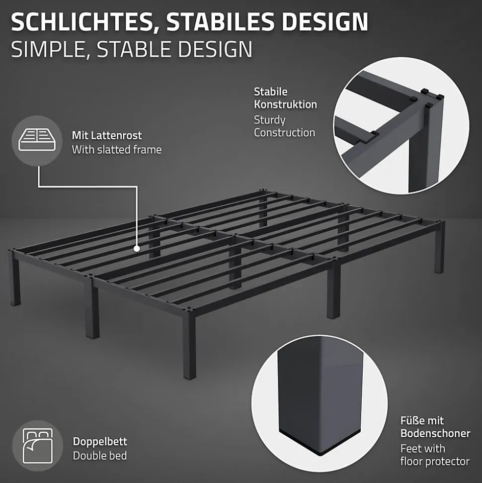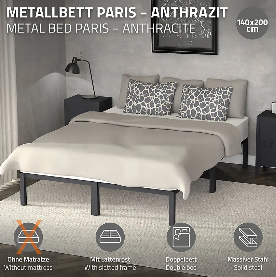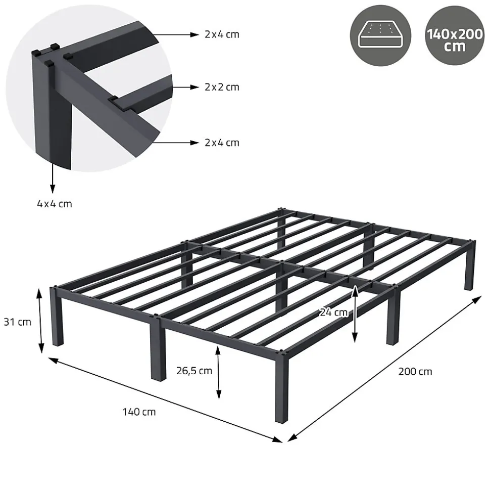 Le cadre de lit élégant de ML-Design est idéal pour votre chambre à coucher. Le design moderne s’adapte très bien à tout intérieur déjà existant. Grâce à sa finition de haute qualité, la construction est très robuste et durable. Les lattes pratiques offrent la stabilité nécessaire et sont très confortables.Le cadre de lit est très facile à monter et à entretenir. Le sommier à lattes fourni est également facile et rapide à monter. Commandez donc dès maintenant ce magnifique lit de ML-Design pour pouvoir dormir tranquillement la nuit. Caractéristiques:Design moderneFacile à monterGrand confort de couchageSommier à lattes fourniPieds avec protections de solConstruction robusteCadre de lit élégant de ML-Design Livraison:1x Cadre de lit avec sommier à lattes1x Matériel de montage Information technique:Matériau du cadre et du sommier: cadre en acier, revêtu par poudreCouleur: anthraciteDimensions (LxlxH): environ 200 x 140 x 31 cmDimensions de la surface de couchage (Lxl): environ 200 x 140 cmDimensions des lattes (LxH): environ 2 x 2 cmDimensions des pieds (LxlxH): 4 x 4 x 31 cmDimensions du cadre (LxH): environ 2 x 4 cmPoids: environ 17,1 kgCapacité max. de charge: 200 kg