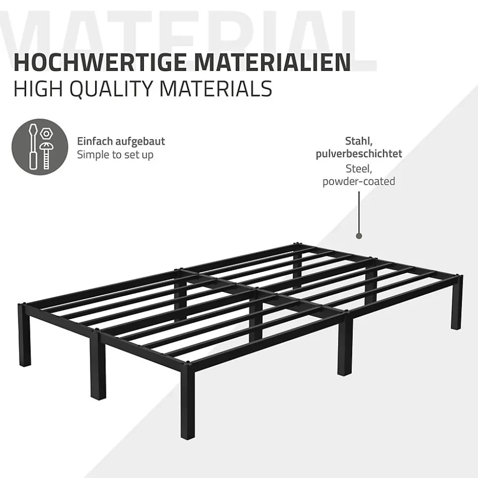 Le cadre de lit élégant de ML-Design est idéal pour votre chambre à coucher. Le design moderne s’adapte très bien à tout intérieur déjà existant. Grâce à sa finition de haute qualité, la construction est très robuste et durable. Les lattes pratiques offrent la stabilité nécessaire et sont très confortables.Le cadre de lit est très facile à monter et à entretenir. Le sommier à lattes fourni est également facile et rapide à monter. Commandez donc dès maintenant ce magnifique lit de ML-Design pour pouvoir dormir tranquillement la nuit. CaractéristiquesDesign moderneFacile à monterGrand confort de couchageSommier à lattes fourniPieds avec protections de solConstruction robusteCadre de lit élégant de ML-Design Livraison1x Cadre de lit avec sommier à lattes1x Matériel de montage Remarque: sans matelas! Information techniqueMatériau du cadre et du sommier: cadre en acier, revêtu par poudreCouleur: noirDimensions (LxlxH): environ 200 x 120 x 31 cmDimensions de la surface de couchage (Lxl): environ 200 x 120 cmDimensions des lattes (LxH): environ 2 x 2 cmDimensions des pieds (LxlxH): 4 x 4 x 31 cmDimensions du cadre (LxH): environ 2 x 4 cmPoids: environ 15,1 kgCapacité max. de charge: 200 kg