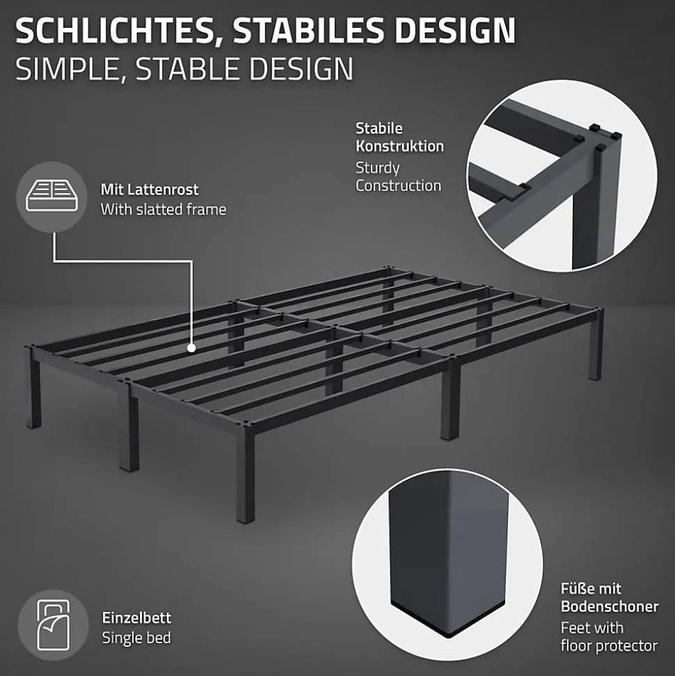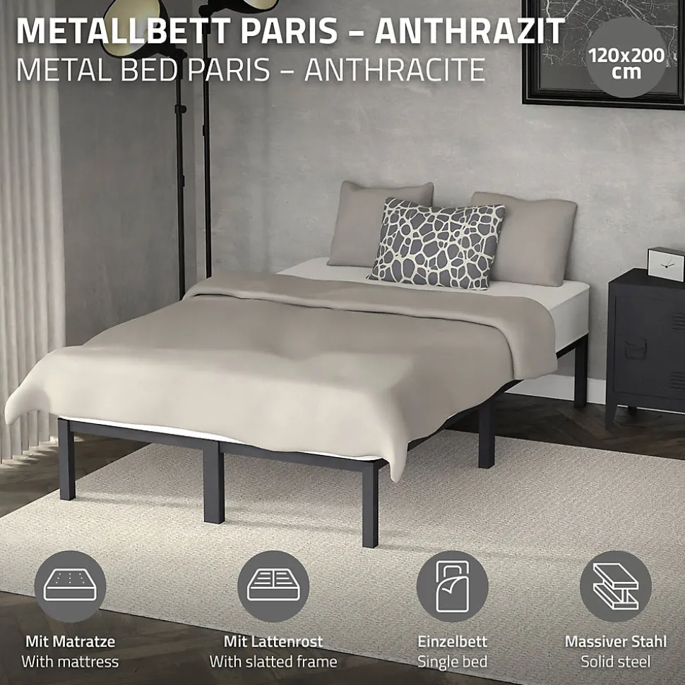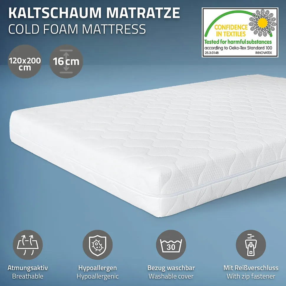 LitLe cadre de lit élégant de ML-Design est idéal pour votre chambre à coucher. Le design moderne s’adapte très bien à tout intérieur déjà existant. Grâce à la finition de haute qualité, la construction est très robuste et durable. Les lattes pratiques offrent la stabilité nécessaire et sont très confortables.MatelasAvec ce matelas en mousse froide, tu obtiendras le sommeil réparateur bien mérité dont tu as besoin. Le matelas en mousse froide offre un soutien sain pour la tête, la nuque, le dos et les jambes. Le noyau du matelas est en mousse froide hypoallergénique de haute qualité et convient donc parfaitement aux personnes allergiques. Si des impuretés se déposent sur le matelas, tu peux facilement retirer la housse piquée à l’aide de la fermeture éclair et la mettre dans la machine à laver. La housse du matelas est amovible et lavable. Une fermeture à glissière sur l’un des deux petits côtés permet d’ouvrir la housse et de l’enlever facilement. Le tissu de la housse est composé à 100 % de polyester.Caractéristiques :Lit :Design moderneFacile à monterGrand confort de couchageSommier à lattes fourniCadre de lit élégant de ML-Design. MatelasMatelas en mousse froide 200 cm x 120 cm x 16 cm avec housse amovibleConvient aux personnes allergiquesParfait pour ton litMousse froide de haute qualitéPositionnement sain des parties du corpsHousse en microfibres facile d’entretien, amovible et lavableTissu de revêtement testé contre les substances nocives selon la norme Öko Tex 100Soutien optimal indépendamment de la position de sommeilLe piquage de l’enveloppe extérieure s’effectue par ultrasons, sans fils, afin de retarder la pénétration de liquides.Matériau douxAdaptation ergonomique au corpsRespirant – bonne circulation de l’airRésistant à l’usureBonne tolérance cutanéeContenu de la livraison :1x cadre de lit de ML-Design.1x matériel et instructions de montage1x Matelas de ML-Design.