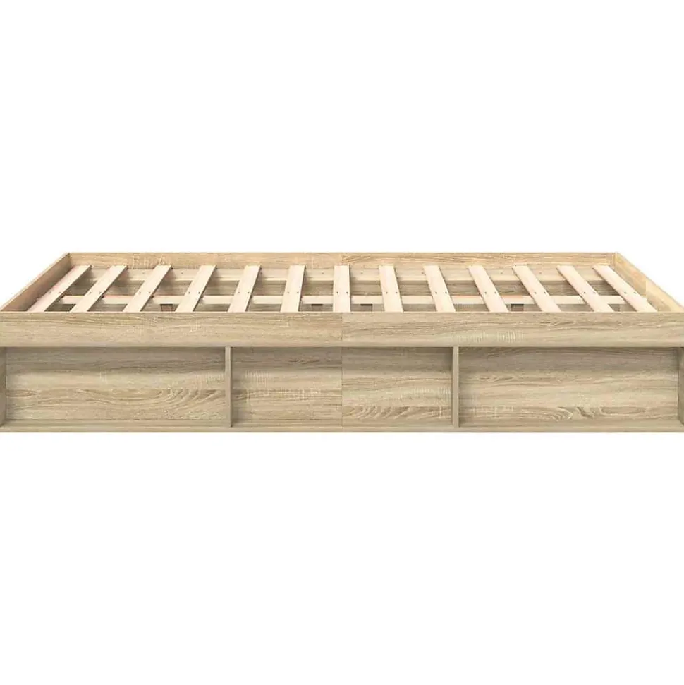 Cadre de lit robuste en chêne sonoma, idéal pour matelas 120×190 cm. Structure bois d’ingénierie avec lattes en contreplaqué et pieds métalliques pour un soutien et une stabilité renforcés. Espace de rangement pratique grâce à une hauteur ajustable et 6 compartiments latéraux. Design moderne et entretien simplifié. Montage facile.