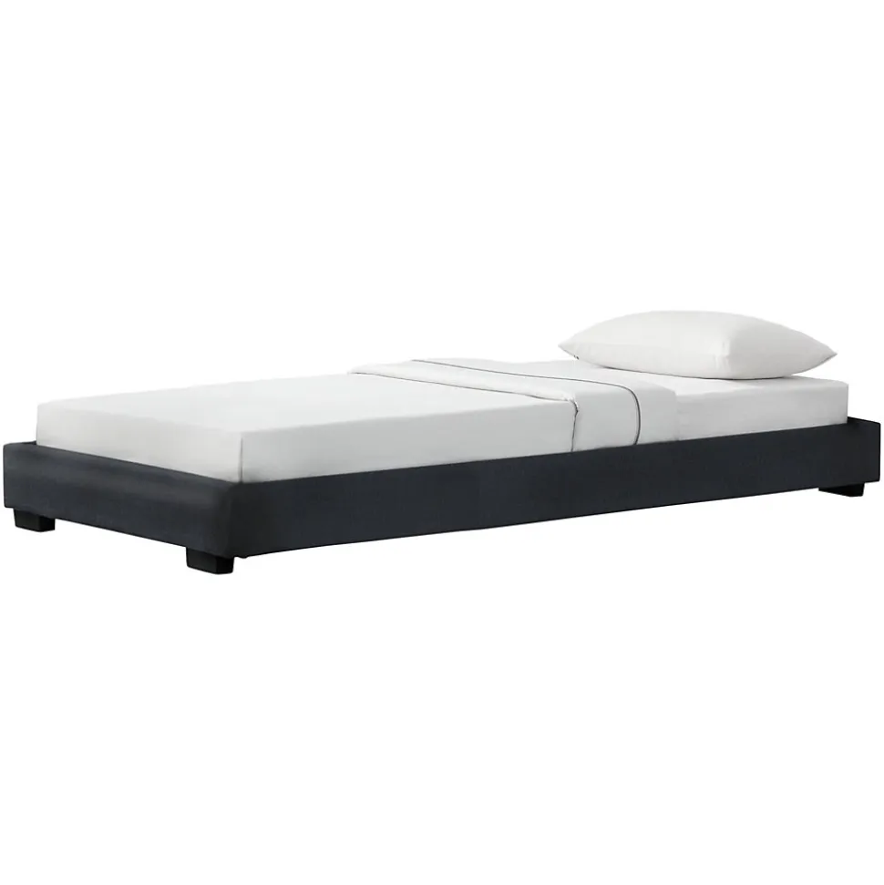 Cadre de lit modernerembourré avec similicuirDescription :- lit moderne rembourré- solide- facileà monterDimensions :- dimensionentière (Lo x La x H) :214 x 96 x 20,5cm- dimension de couchage (Lo x La) :200cm x 90cm- hauteur des pieds :4,5cm- distance entre le sol et le sommierà lattes :16cmMatière :- cadre de lit en MDF rembourré avec similicuir- sommierà lattes en plaque de bois- pieds de lit en plastiqueCouleur :noirContenu de la livraison :1 x lit1 x sommierà lattes (réalisation simple)Produit de la marqueCorium®.Attention ! La commande est indiquée hors matelas, couverture, oreiller et produits de décoration.