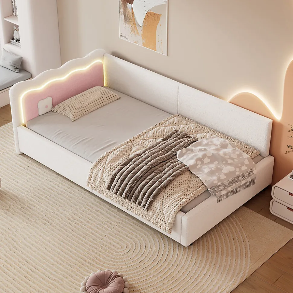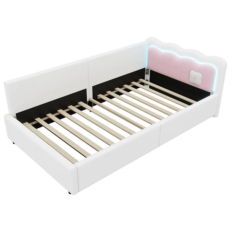 - Structure robuste en métal et panneaux de particules, assise en mousse haute densité. Montage requis, deux personnes conseillées ; entretien facile du tissu avec un chiffon doux et aspiration régulière.