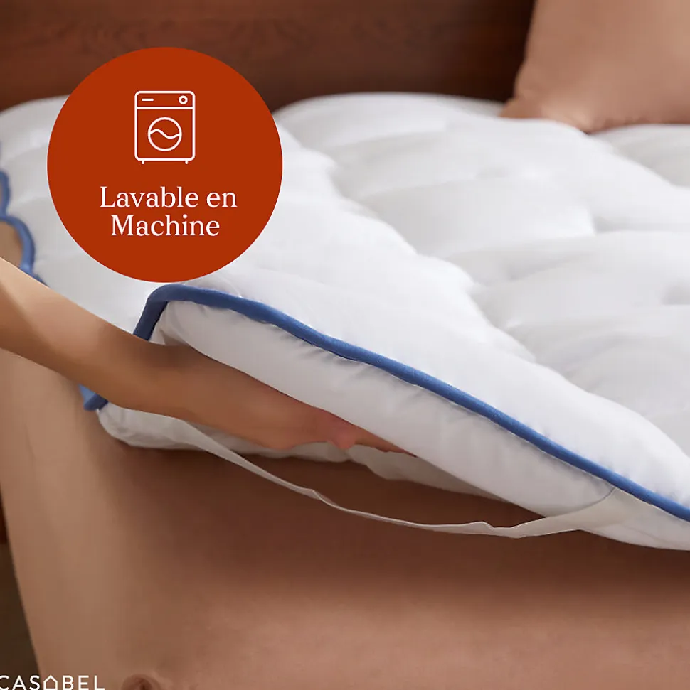CASABEL surmatelas enveloppant 150×200 cm en microfibre respirante, ultra moelleux, anti-acariens, avec liseré bleu
