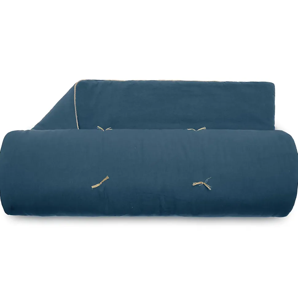 Le chemin de lit HONO DECO en 100 % coton lavé avec garnissage polyester et finition capitonnée apporte confort et élégance. En 80×200 cm, il est décliné en bleu marine.