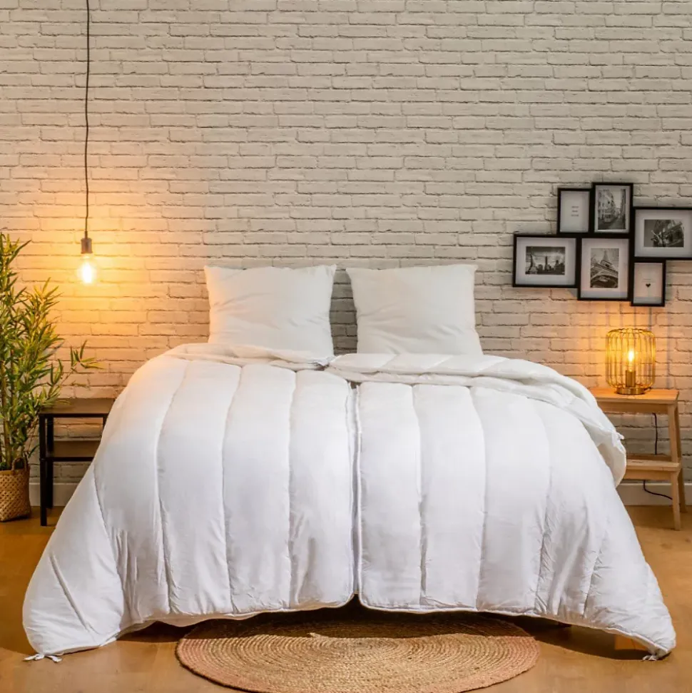 - 2x200g/m² + 2x300g/m² : couette 4 saisons – Taille des couettes : 240x260cm = demi-couettes de 130×240 / 240x260cm = demi-couettes de 130×240
