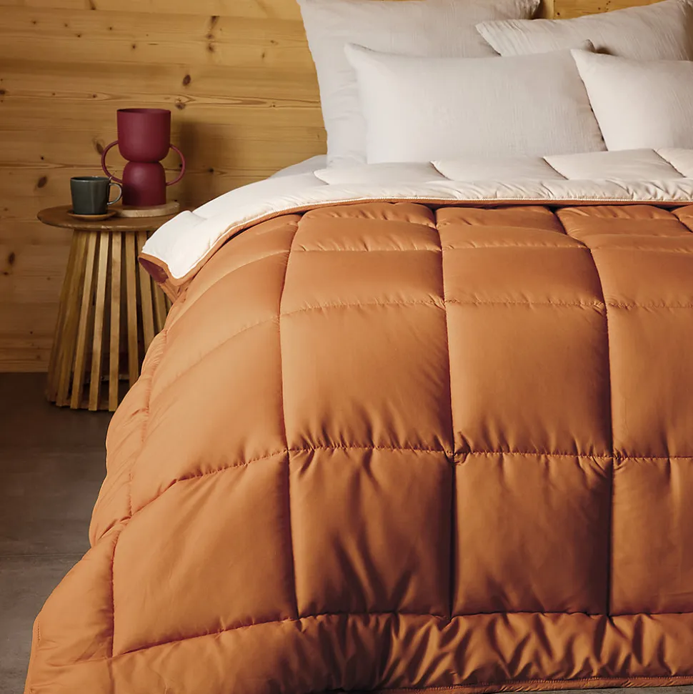 Cette couette chaude en microfibre est conçue pour apporter un accueil souple et un bon niveau de chaleur pendant la nuit. Son garnissage en fibres creuses siliconées de 400 g/m² aide à conserver la chaleur tout en gardant une sensation de légèreté appréciable au quotidien. Son enveloppe en microfibre offre un toucher agréable et une Finition soignée avec biais. Réversible, elle permet de varier facilement la présentation du lit selon vos envies, tout en restant simple à utiliser au fil des saisons les plus fraîches. Elle convient aussi bien pour une chambre d’adulte que pour une chambre d’amis, avec Plusieurs dimensions disponibles pour s’adapter à la plupart des couchages. Le label Oeko-Tex constitue également un repère rassurant pour le choix du linge de lit. Informations complémentaires Couette chaude réversible Enveloppe : 100 % polyester microfibre Garnissage : 100 % polyester fibres creuses siliconées Grammage du garnissage : 400 g/m² Finition : biais Label : Oeko-Tex Traitement : Stopflam Tailles disponibles : 140×200 cm, 160×220 cm, 200×200 cm, 220×240 cm et 240×260 cm Vendue à l’unité