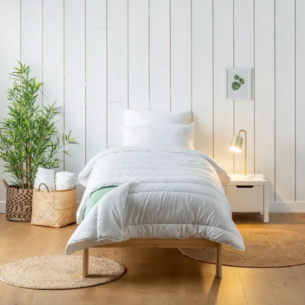 La couette ÉVOLUTIVE ENFANT de Bleu Câlin- Couette Tempérée- Fabrication Française- Assemblage facile- Lavage et séchage en machine jusqu’à 95°Une couette qui grandit avec votre enfantFutée, la couette ÉVOLUTIVE ENFANT de Bleu Câlin ! Ce modèle se compose d’une couette de 140×150 cm conçue pour un petit lit, et d’un empiètement de 50 cm facile à ajouter à l’aide d’un zip discret. Ce système permet à cette couette de s’adapter au premier lit de grand de votre enfant. Et il se révèle aussi pratique pour glisser la couette dans le tambour de la machine à laver !La petite couette qui a tout d’une grandeFabriquée en France, la couette ÉVOLUTIVE ENFANT bénéficie de finitions soignées. Et pour offrir un environnement de sommeil sain à votre enfant, elle est conçue pour résister aux lavages fréquents jusqu’à 95°. Laver régulièrement la couette de votre enfant à haute température constitue en effet un excellent moyen de limiter la présence des acariens. Hygiénique, pratique et douce : cette couette offre un environnement de sommeil douillet à votre bout de chou.Ne convient pas pour des enfants de moins de 9 mois. ne pas utiliser dans des berceaux ou des lits nacelles.Produit comportant au moins 70% de matières recycléesProduit totalement recyclable