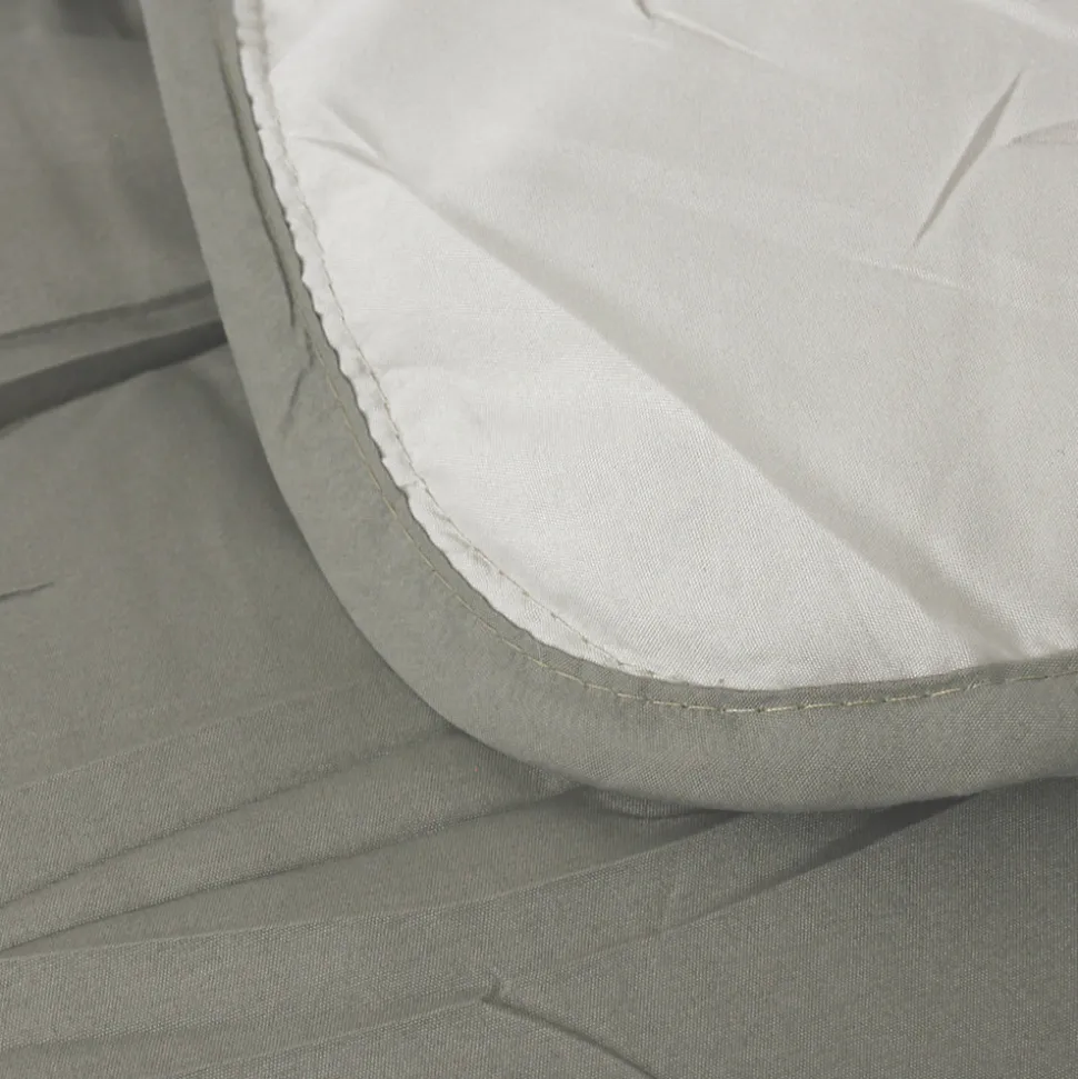 Couette 260×240 cm été COCOON BICOLORE Taupe/Lin Garnissage fibre creuse siliconée 100% polyester 200 g/m2, enveloppe microfibre 100% polyester toucher peau de pêche et piquage carreaux avec cadre et biais + housse de rangement – Fabriqué en Chine