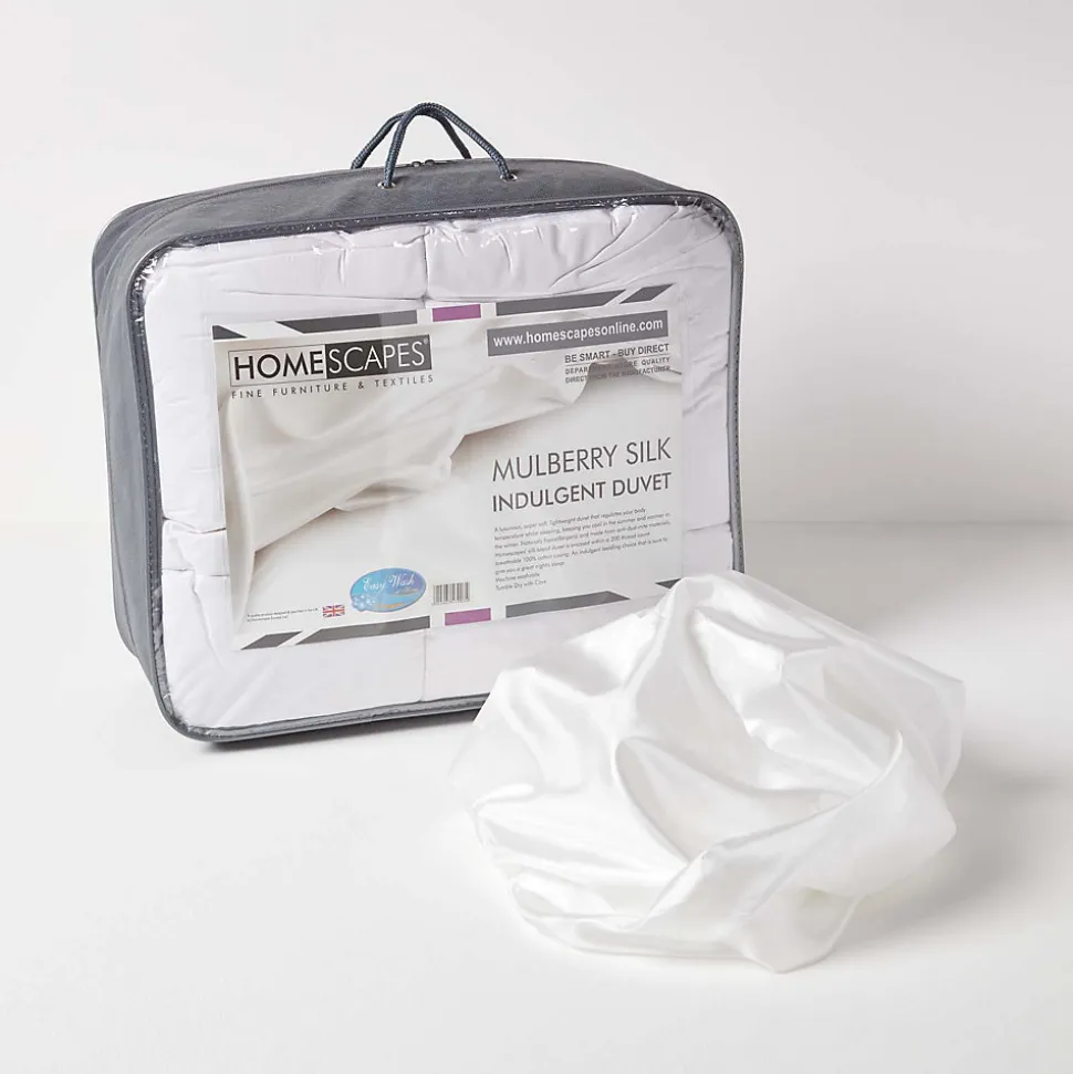 Pour des bonnes nuits de sommeil bien au chaud, Homescapes vous présente cette couette chaude en soie thermorégulatrice, hypoallergénique et absorbante. La soie est naturellement saine et isolante. Elle absorbe l’humidité, ce qui lui permet d’être respirante et donc de mieux évacuer la transpiration. Ainsi cette couette hiver possède une thermorégulation exceptionnelle, qui vous apportera chaleur et confort. Notre couette en soie utilise un mélange unique de soie de mûriers et de polyester conçu spécialement pour Homescapes. Bien que très chaude, cette couette de lit reste cependant souple et enveloppante. La soie est aussi naturellement saine et hypoallergénique ; cette couette est idéale pour les personnes souffrant d’allergies et d’asthme et fera le bonheur des peaux les plus sensibles. La soie est une fibre inhospitalière pour les acariens et est donc naturellement antibactérienne, sans traitement chimique. Le mélange utilisé pour cette couette a été conçu spécialement pour Homescapes, et est donc unique.