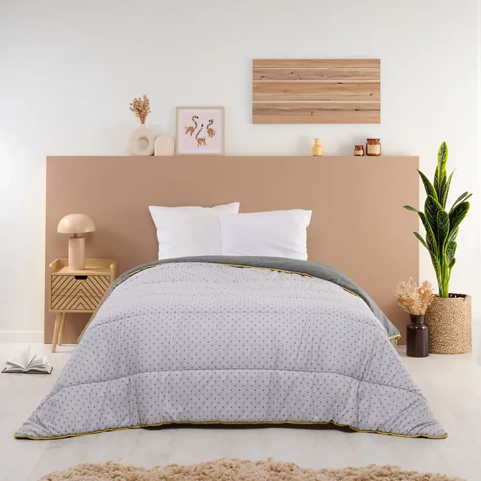 La couette GRAPHIQUE de Bleu Câlin- Couette Chaude- Fabrication Française- Utilisation sans housse- Lavage à 40°CLa couette esprit édredonLa GRAPHIQUE de Bleu Câlin affiche un imprimé tendance et un piquage en ligne droite façon édredon. Offrez-vous un précieux gain de temps et de place : cette jolie couette réversible et très déco s’utilise sans housse. Avec son enveloppe 100% polyester au toucher peau de pêche et son gonflant, elle vous enveloppe dans un cocon douillet tout au long de la nuit.Bien chaude et facile à vivreLa couette GRAPHIQUE bénéficie d’un garnissage 350mg/m² qui assure chaleur et circulation optimale de l’air. Ce modèle est idéal en hiver et à la mi-saison. Cette couette fabriquée en France conserve ses qualités et sa belle apparence au fil du temps.Ce produit est certifié de la norme OEKO-TEX Standard 100 – Testé pour les substances nocives.Produit comportant au moins 70% de matières recycléesProduit totalement recyclable