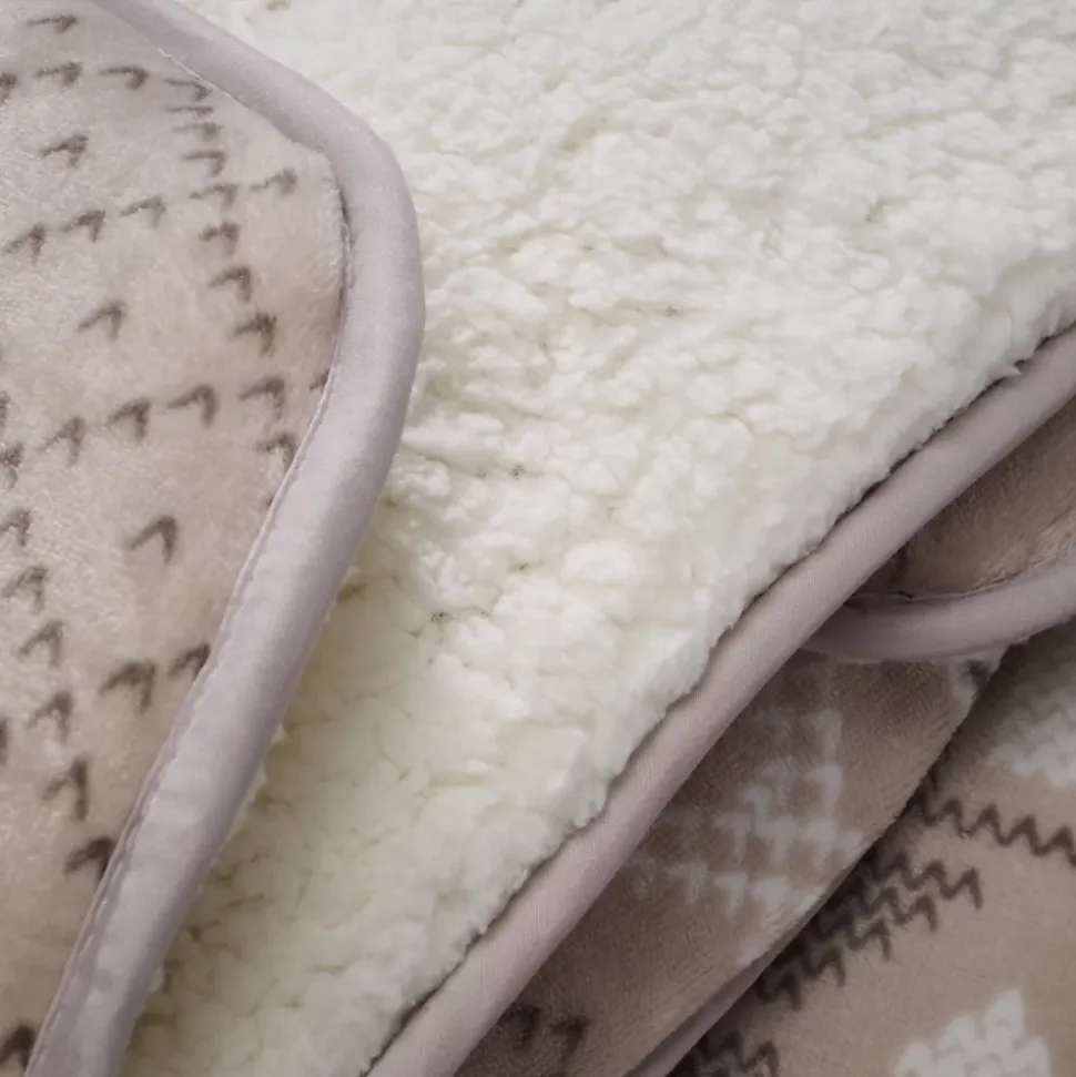La couette Chalet de Bleu Câlin- Couette Chaude- Face extérieure 100% polyester toucher velours- Face intérieure 100% polyester sherpa polaire- Utilisation sans housse- Lavage en machine à 40°CLa beauté de la traditionLa couette Chalet est une création signée Bélier du Nord, la marque de literie traditionnelle de Bleu Câlin. Elle arbore d’élégants imprimés hivernaux dans les tons beige et blanc, rappelant la décoration typique des chalets de montagne.Une couverture chaude et polyvalenteComposé d’une face au toucher velours et d’un revers polaire sherpa cocooning effet laine de mouton, ce modèle peut s’utiliser aussi bien comme un plaid que comme une couette classique. Son garnissage généreux lui confère une chaleur idéale pour l’hiver.Piquage : Carreaux.Produit comportant au moins 70% de matières recycléesProduit totalement recyclable