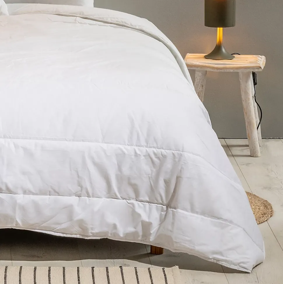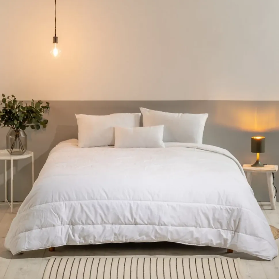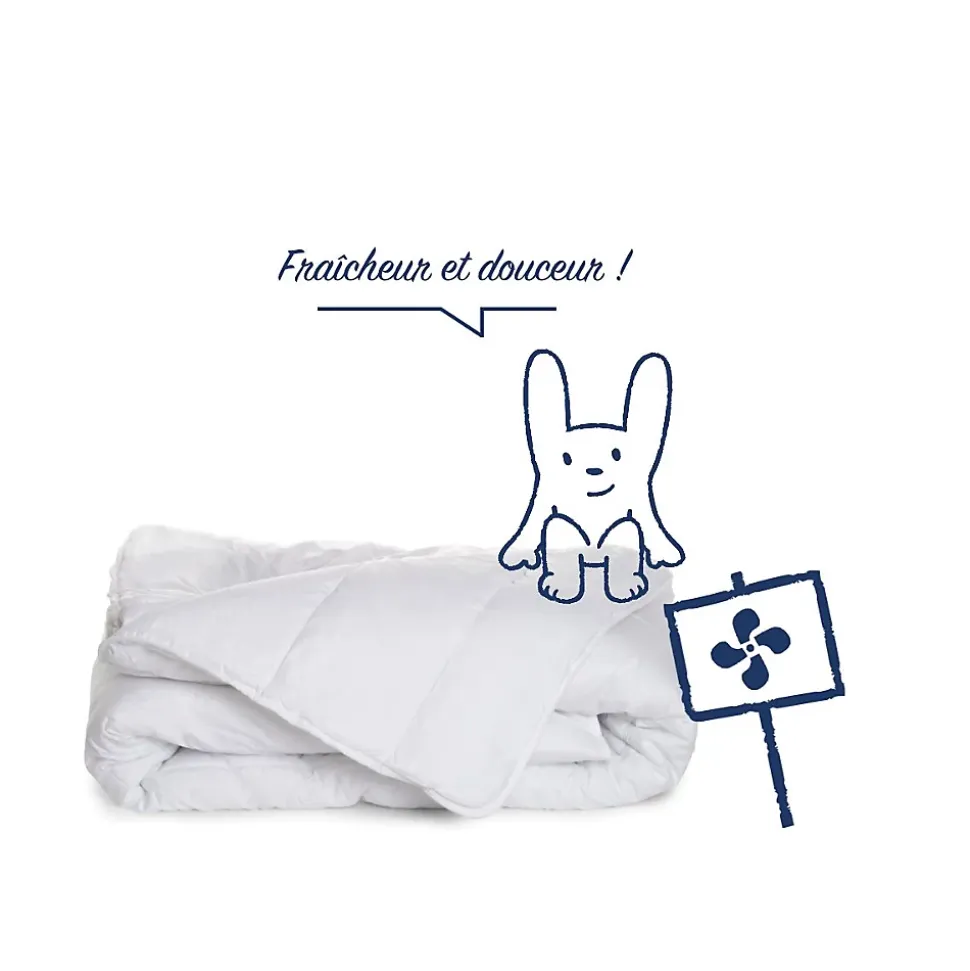 La Couette SPECIALE ETE – Enveloppe en coton naturellement respirant- 200g/m² : couette légère- Fabrication française- Lavable en machine (40°)La couette tout en légèretéFine et ultra-légère, la couette Spéciale Été est conçue pour vous offrir confort et aération optimale lorsque les températures sont élevées. Son enveloppe en coton – matière naturellement respirante – lui confère fraicheur et douceur : l’idéal pour bien dormir quand les températures grimpent ! Si elle est particulièrement indiquée lors de la période estivale, elle constitue aussi une excellente couette d’appoint en hiver : glissez-la dans la housse avec votre couette hivernale habituelle, et boostez ainsi ses performances, pour une chaleur renforcée ! Le savoir-faire et l’innovation technologique au service de vos nuitsBénéficiant de finitions soignées, la couette Spéciale Été est dotée d’un garnissage exclusif ISOLANE. Ces fibres creuses siliconées tridimensionnelles vous offre un véritable cocon pour un sommeil paisible, tout en étant facile à entretenir avec un lavage en machine à 40°.Ce produit est certifié de la norme OEKO-TEX Standard 100 – Testé pour les substances nocives. Produit comportant au moins 50% de matières recycléesProduit totalement recyclable