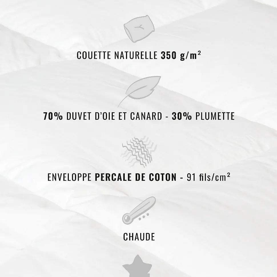 Couette naturelle – Chaude – 70% duvet anti-acarienne 200×200 cm APPALACHES