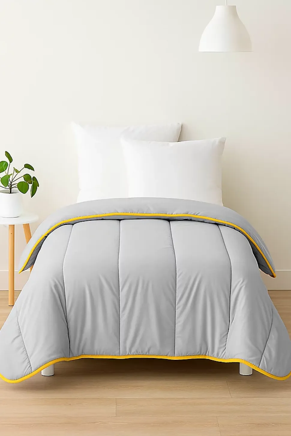 Couette unie – 1 personne (140×200)Garnissage : 400 grs par m² de fibre creuse siliconéeTissu MicrofibreCoins ronds – Double piquage – Biais Polycoton couleurVendue dans sa housse de rangementLavable à 40°Pas de séchage tambourPas de repassagePas de nettoyage à secFabrication française