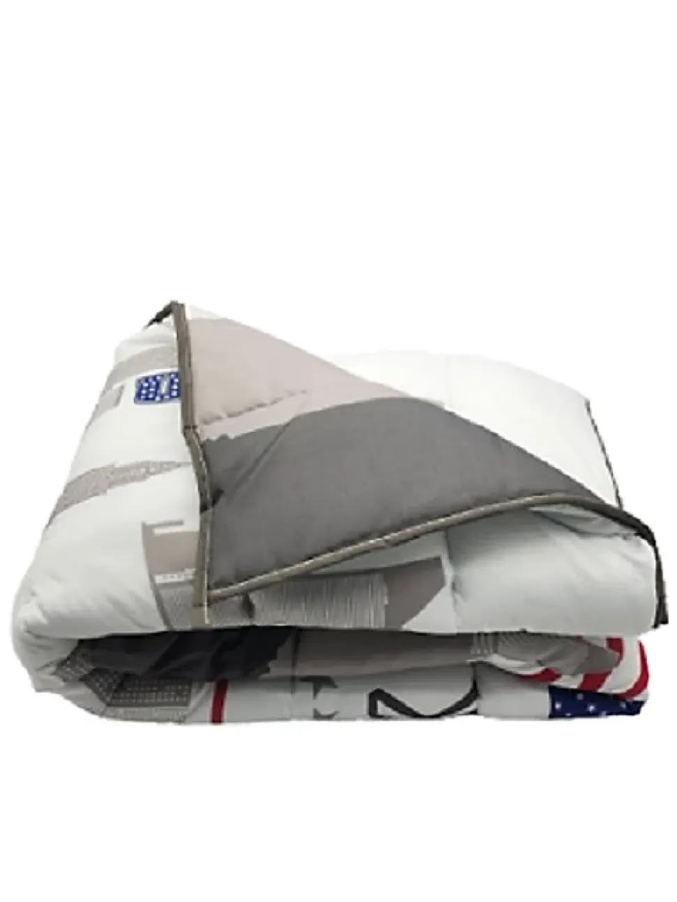 Couette double face imprimée- 1 personne (140×200)Garnissage : 300 grs par m² de fibre polyesterTissu MicrofibreCoins carrés – Biais non tissé couleur aléatoireVendue dans sa housse de rangementLavable à 40°Pas de séchage tambourPas de repassagePas de nettoyage à secFabrication française