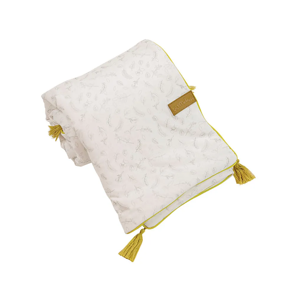 Cette couverture double face enveloppera bébé de douceur et de chaleur.Parfaite pour les balades, les sorties, ou à la maison, elle suit bébé partout. Ornée de pompons aux quatre coins, ses finitions raffinées et son coton biologique de qualité vous séduiront.Une finition en passepoil apporte un rendu qualitatif.Une gigoteuse, un tour de lit et un nid d’ange assortis sont également disponibles sur notre site.Caractéristiques : Dimensions : 75 x 100 cmComposition :Tissu jersey 100% coton biologique certifié GOTS, intérieur ouate 100% polyester recyclé avec des bouteilles en plastique, certifié GRSColoris : ecruLavage : Lavage à l’envers, 30°C Vendue à l’unité.