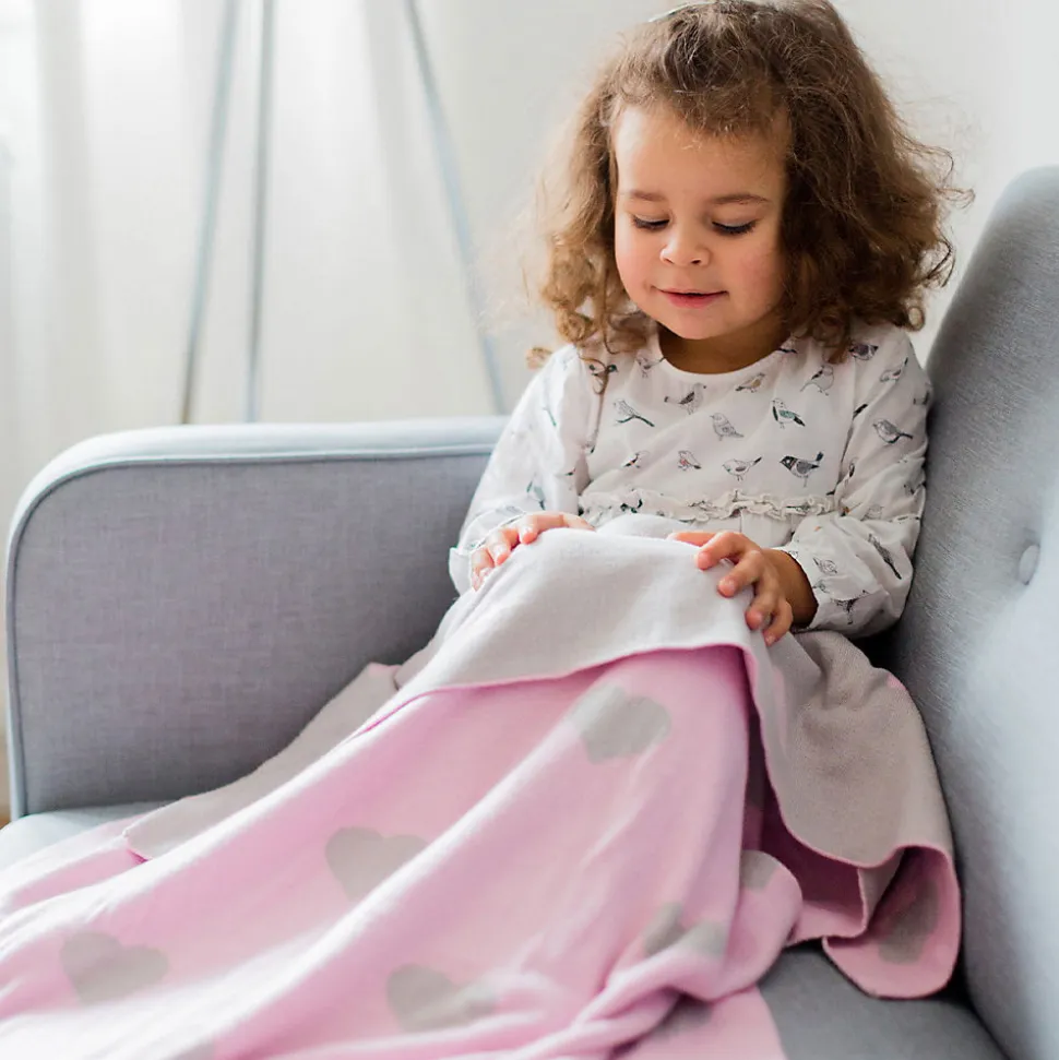 La couverture douillette pour enfants de Kindsgut est le compagnon idéal de ton enfant. Tricotée en coton 100% certifié (STANDARD 100 by OEKO-TEX) elle est parfaite pour la maison, mais convient aussi pour les déplacements : pour couvrir la poussette, se blottir en voyage ou comme grand doudou pour la crèche. Elle se plie et se range ainsi facilement à la maison ou en déplacement. La couverture douce en matériaux naturels convient aux bébés et peut ensuite accompagner ton enfant pendant longtemps. Grâce à la qualité supérieure du coton, la couverture a une longue durée de vie – et est facilement lavable. Disponible en différentes couleurs et motifs, elle attire tous les regards, quel que soit son design discret : à toi de choisir ! Qualité exceptionnelle : 100% coton certifié STANDARD 100 by OEKO-TEX.Polyvalente : que ce soit à la maison, à la crèche ou en voyage, la couverture légère et compacte est toujours un compagnon douillet pour ton enfant.Durable : certifiée en matériaux ne contient pas de substances nocives et sa finition est adaptée aux enfants.Facile à nettoyer : lavable en machinePour tous les goûts : la couverture réversible est disponible avec différents motifs qui conviennent aussi bien aux filles qu’aux garçons.Le cadeau idéal : pour une naissance, un anniversaire ou un baptême.L’amour du détail : joliment emballée dans un carton Kindsgut de haute qualité.Poids : 308 g Dimensions : 100 x 0,3 x 80 cm