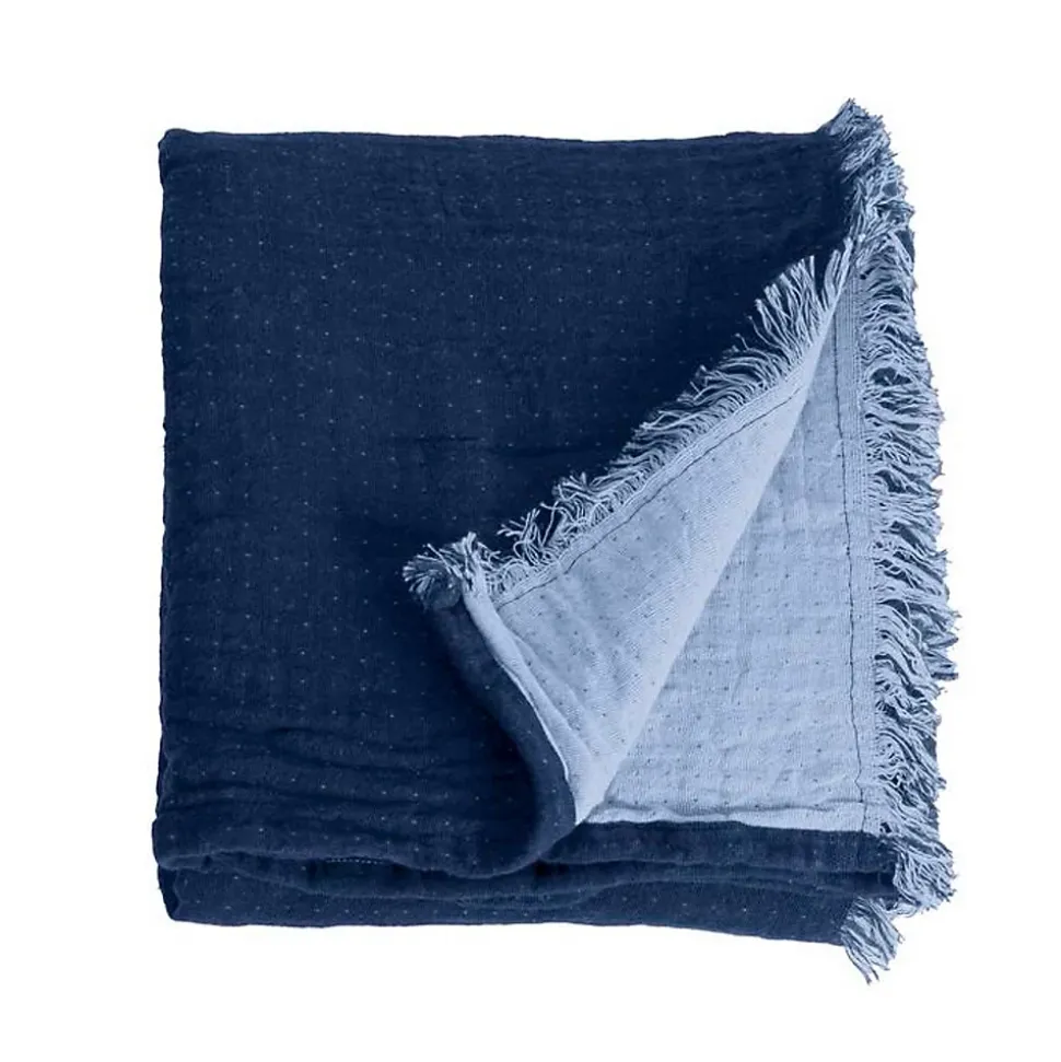 Description : Découvrez la couverture plaid BITALD, une pièce alliant douceur et naturel pour sublimer votre intérieur. Fabriquée en coton 100 %, elle offre une texture agréable et une légèreté idéale pour les moments de détente. Son bleu marine profond apporte une touche apaisante et intemporelle, s’intégrant parfaitement dans une variété d’ambiances, qu’elles soient modernes ou classiques.Le tissage soigné et les franges délicates apportent une touche d’originalité tout en restant discrète. Parfaite pour habiller un canapé ou servir de couverture légère sur un lit, elle s’adapte à différents usages tout en conservant une élégance sobre. Son toucher naturel et sa respirabilité en font un choix judicieux pour un confort quotidien.Un accessoire polyvalent qui marie simplicité et raffinement, pour une touche décorative qui dure dans le temps. Détails : Dimensions : Couverture Plaid : L 170 × l 130 cm Matières : – Tissu : 100 % coton- Franges : coton Couleurs : Bleu MarineBleu Grisâtre (variante possible pour une touche plus moderne ou neutre)Bleu Pétrole (pour une alternative plus profonde et élégante)Bleu Canard (pour une nuance légèrement plus claire et douce)Bleu Nuit (pour une version plus sombre et sophistiquée)Bleu Ciel (si une version plus claire est envisagée pour une ambiance plus légère)