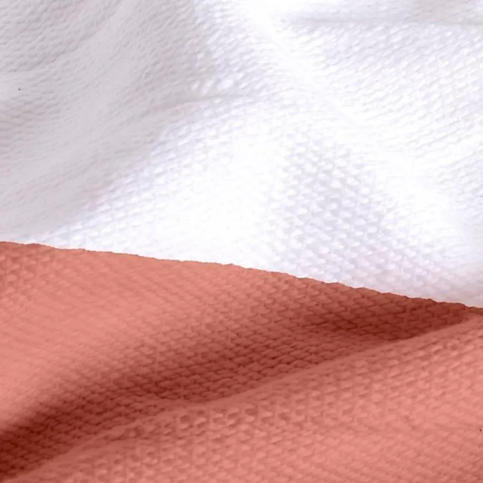 Description : Découvrez une couverture plaid alliant douceur et simplicité, conçue pour s’intégrer naturellement dans votre quotidien. Fabriquée en coton 100 %, elle offre une texture agréable et légère, idéale pour les moments de détente ou pour habiller un canapé avec élégance.Son motif de rayures, associant des nuances de rose saumon et de blanc, apporte une touche discrète et intemporelle à votre intérieur. Ces teintes apaisantes créent une ambiance harmonieuse, tout en restant adaptées à divers styles de décoration. La couverture se distingue également par ses franges délicates, ajoutant une finition subtile et raffinée sans surcharger le design.Parfaite pour les saisons douces, elle allie confort et légèreté, tout en restant facile à entretenir. Son format généreux (130 x 170 cm) en fait un accessoire polyvalent, aussi bien pour envelopper une personne que pour servir de pièce maîtresse dans un espace vivant. Détails : Dimensions : – Couverture Plaid : L 170 × l 130 cm- Franges : Longueur approximative de 10 à 15 cm Matières : – Composition principale : 100 % coton- Franges : coton Couleurs : Rose SaumonBlanc