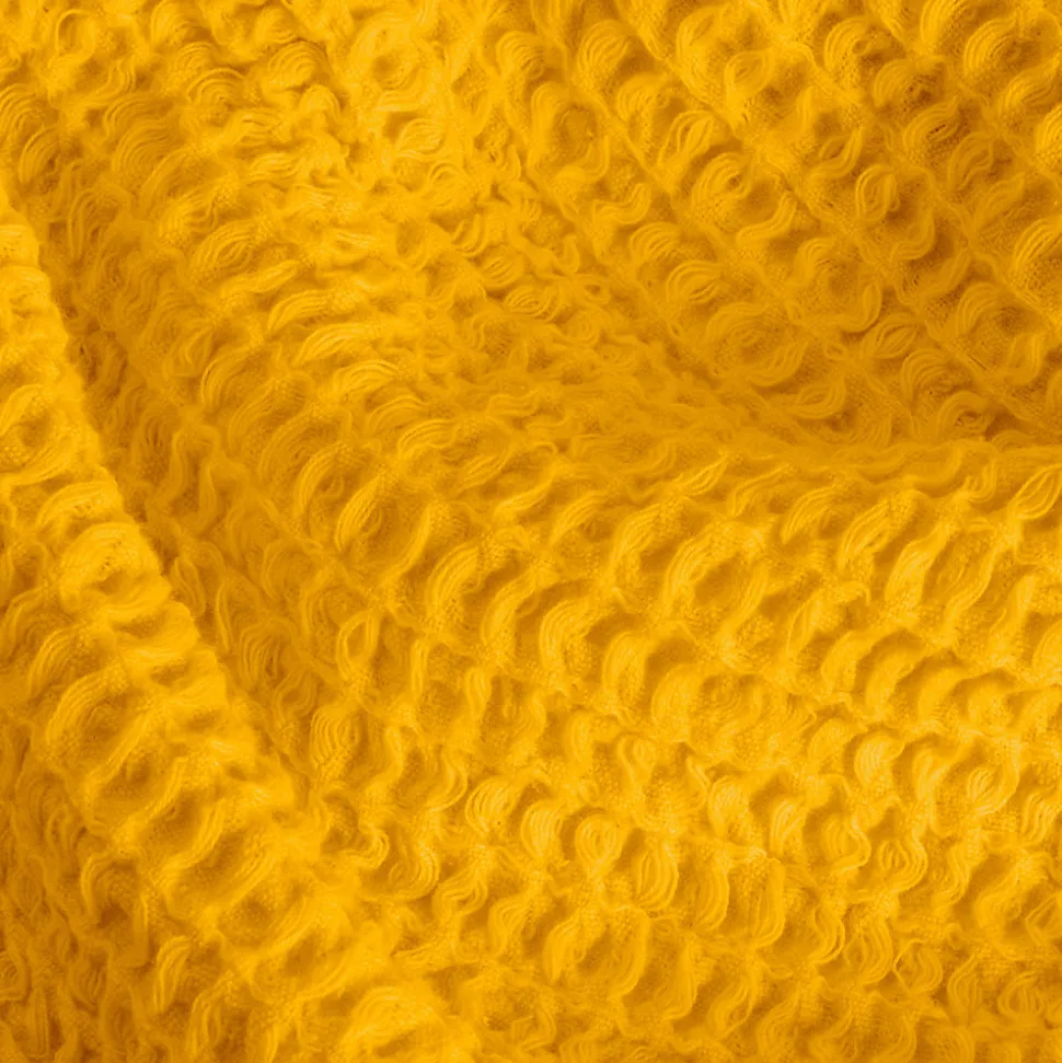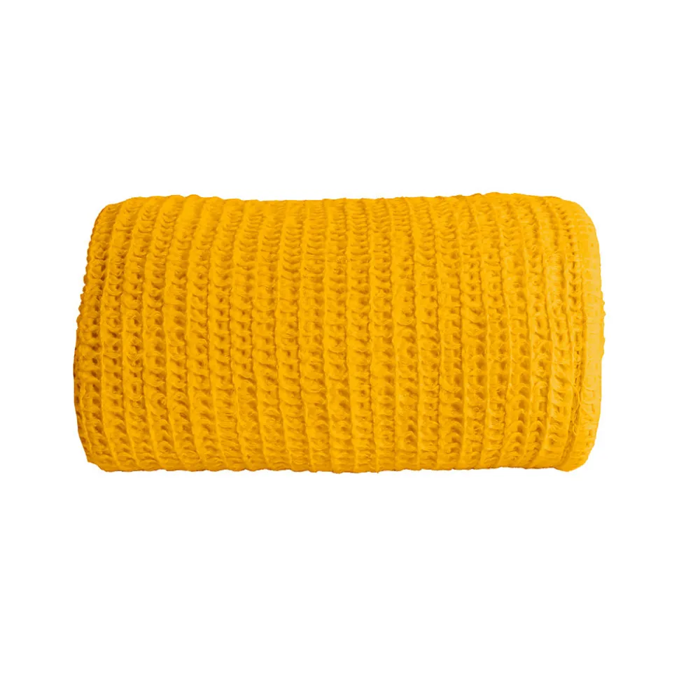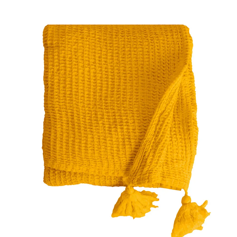 Douceur coton jaune : Le coton 100% offre un toucher doux et une respiration optimale pour un confort durable., Confort naturel : Alliez élégance et détente avec ce plaid en coton 100%., Éclat jaune naturel :