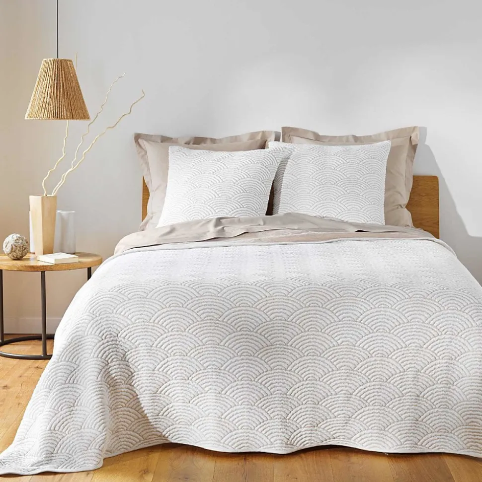 Offrez vous une couche supplémentaire de chaleur tout en décorant votre chambre à coucher grâce au couvre-lit matelassé en microfibre et jersey au style graphique du plus bel effet.Pour lit 2 personnes, couvre-lit de dimensions 220×240 cm avec 2 housses de coussins 60×60 cm.Caractéristiques du couvre-lit matelassé 220×240:Dimensions couvre-lit : 220×240 cm2 Housses de coussins 60×60 cmMatière : microfibre 99% polyester et 1% élasthanneConforme aux exigences du décret n°2000-164 du 23 février 2000