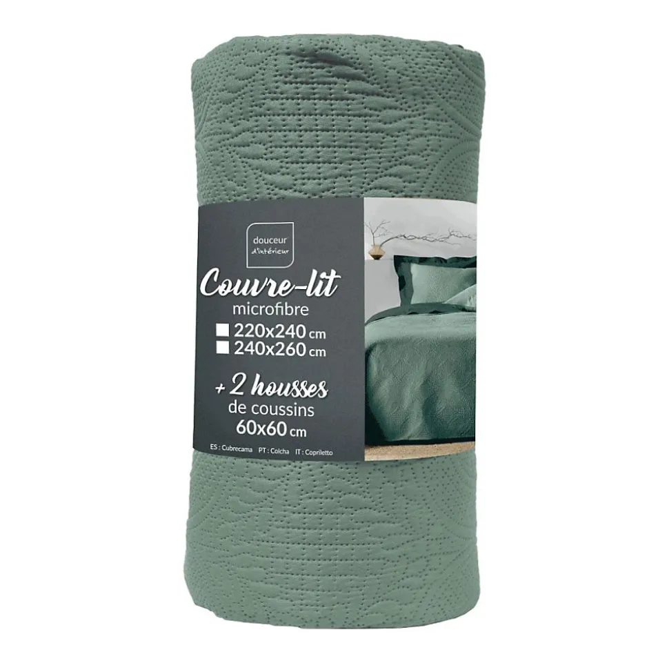 Offrez vous une couche supplémentaire de chaleur tout en décorant votre chambre à coucher grâce au couvre-lit matelassé en microfibre au style graphique uni du plus bel effet. Pour lit 2 personnes, ce couvre-lit de dimensions 220×240 cm apportera de la couleur à votre literie.Caractéristiques du couvre-lit matelassé microfibre :Dimensions couvre-lit : 220×240 cm2 Housses de coussins 60×60 cmMatière : microfibre 100% polyesterConforme aux exigences du décret n°2000-164 du 23 février 2000