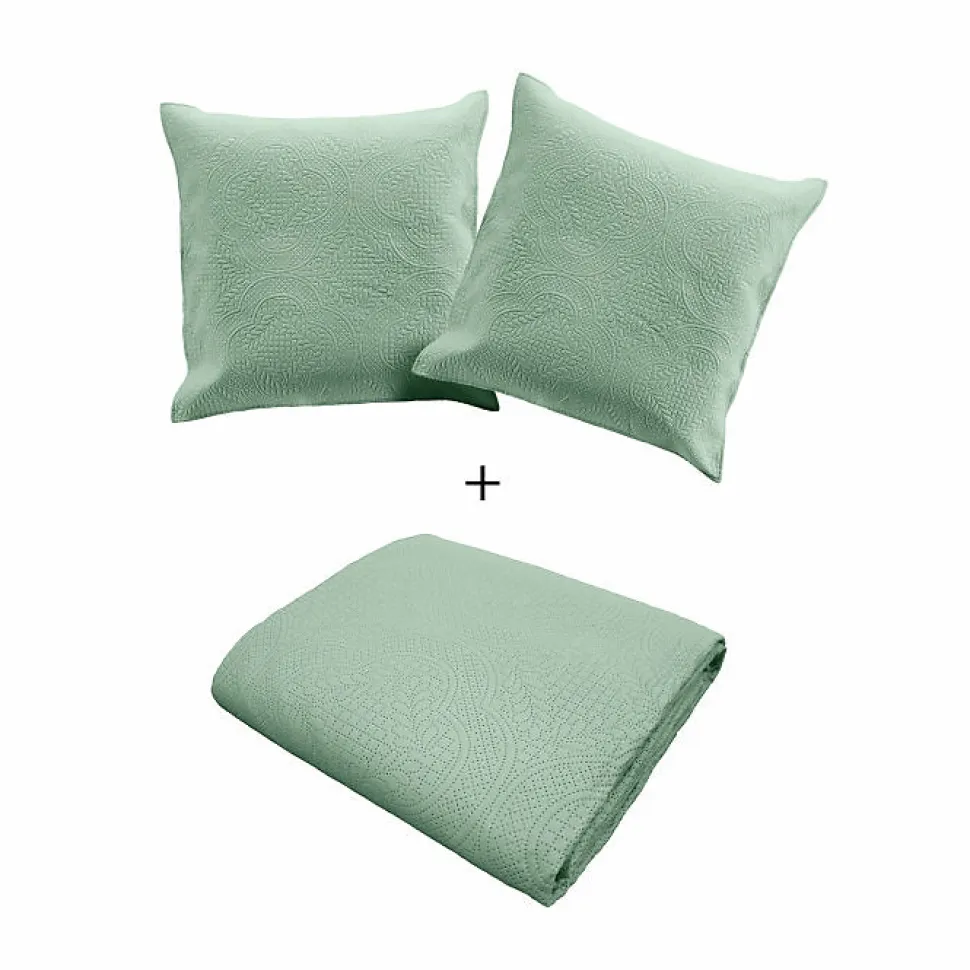 Couvre-Lit Matelassé (220 x 240 cm) et 2 Taies d’Oreiller (60 x 60 cm) Romane Gris, Microfibre UnieMICROFIBRE UNIE – Le linge de maison en microfibre, qu’il s’agisse de linge de lit, tapis, rideaux ou même de nappes, offre une combinaison entre douceur et durabilité. Avec son toucher doux et confortable, il procure un confort optimal pour le sommeil, les moments de détente ou les activités quotidiennes.Taille : 220×240 cm + 2 housse de coussin 60×60 cmMatière : 100% PolyesterCouleur : Vert saugeLavage à 40° – Séchage modéré – Repassage à 110°