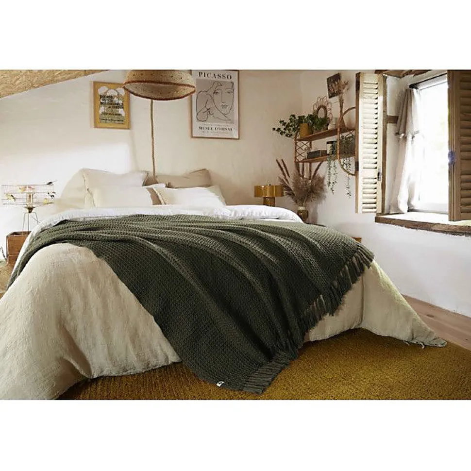 Couvre lit à franges nid d’abeille « Gabin » 240 x 260 cm – Gabin Thym