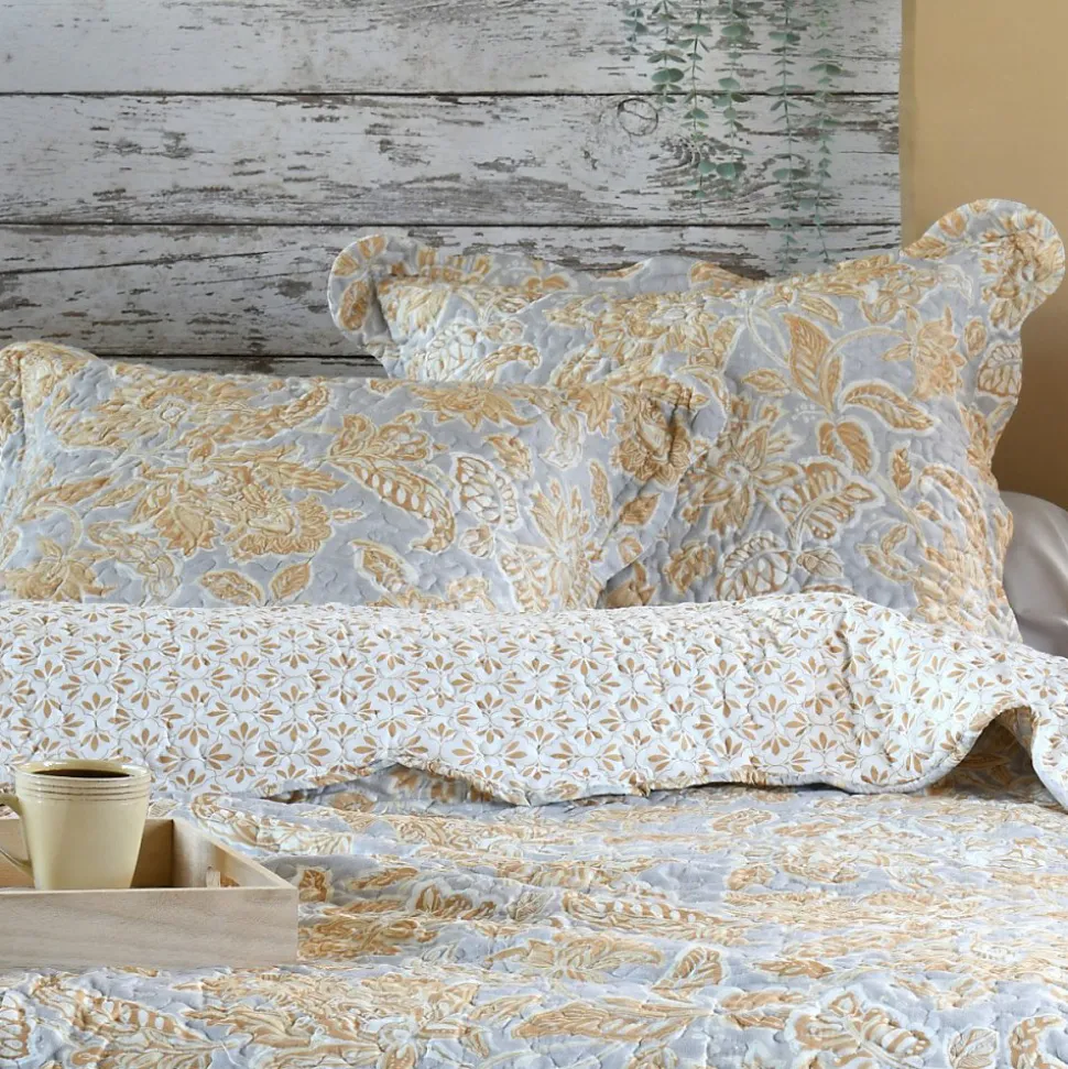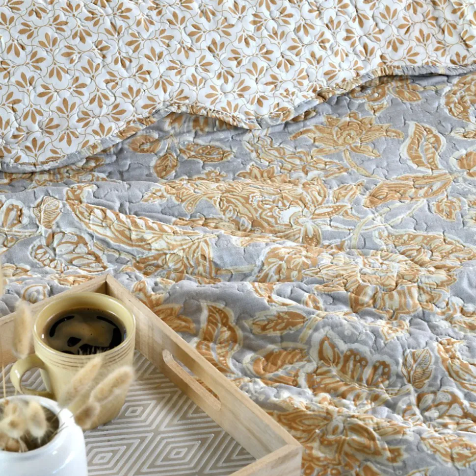 Découvrez un couvre-lit décoratif original et indémodable pour votre lit deux personnes. Le boutis NERYA coloris moutarde est réversible et accompagné de 2 taies d’oreillers de dimensions 65 x 65 cm reprenant le même motif.Caractéristiques du couvre-lit boutis NERYA:Dimensions du couvre-lit: 240×220 cmRéversible2 taies d’oreiller 65×65 cmComposition : 100% polyesterCe couvre-lit est conforme aux exigences du décret n°2000-164 du 23 février 2000.Label de qualité OEKO-TEX STANDARD 100 garantissant l’absence de substances nocives pour la santé et pour l’environnement.