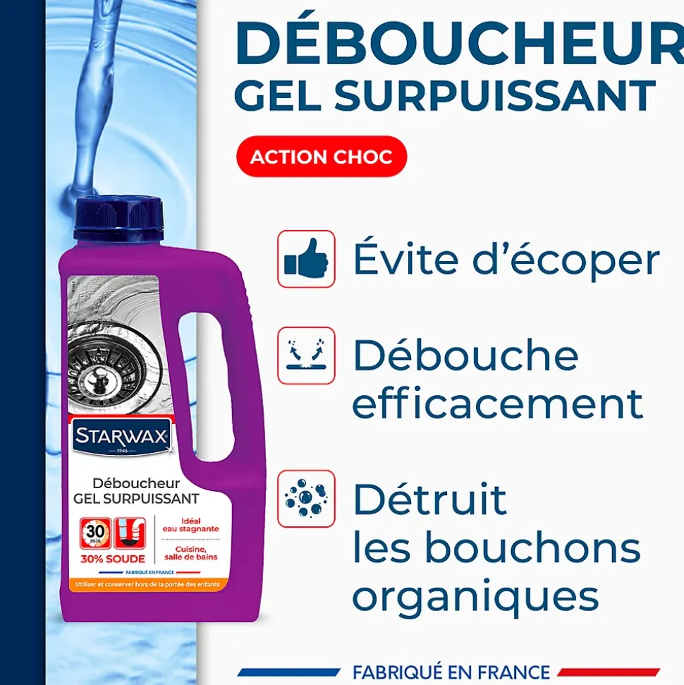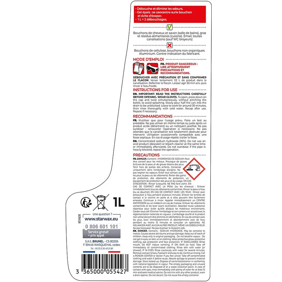 Déboucheur gel à la soude canalisations cuisine et salle de bains Starwax 1L