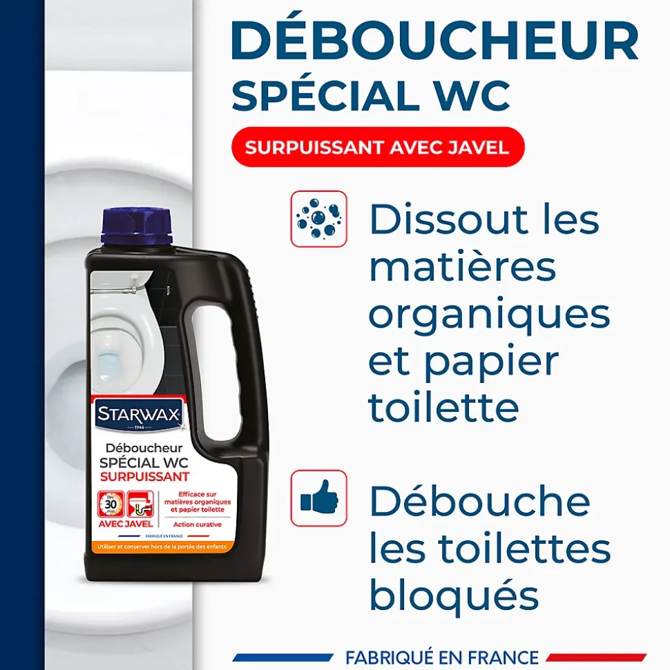 Idéal pour dissoudre les matières organiques et le papier toilette Formule sans acide sulfurique, à base de potasse et renforcée en Javel Convient pour les WC classiques