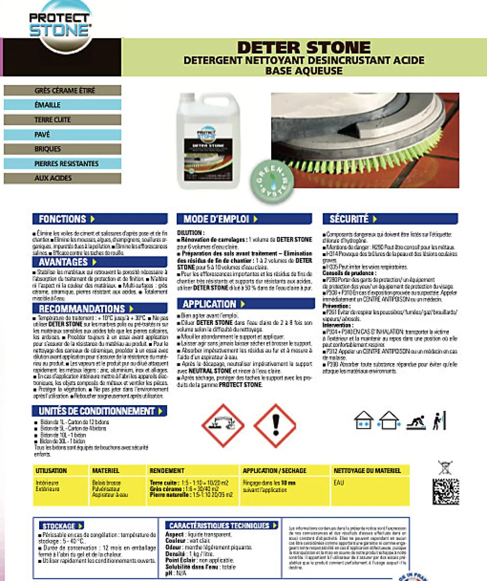 Décapant Voile de Ciment et mousse Nettoyant puissant pour Pierre Naturelle, Marbre, Carrelage, Béton Int/Ext 1L (20m²)