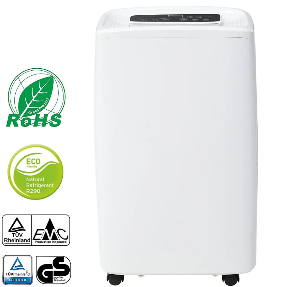 1. Puissante capacité de déshumidification:Ce déshumidificateur à compresseur élimine jusqu’à 12 litres d’humidité par jour. Son réservoir d’eau de 1,5 L réduit la fréquence de vidange. Idéal pour la cave, buanderie, salle de bain, salon ou chambre.2. Minuterie intelligente et contrôle de l’humidité: Équipé d’une minuterie réglable de 1 à 24 heures et d’un capteur d’humidité, l’appareil ajuste automatiquement le taux d’humidité souhaité et s’allume ou s’éteint selon les besoins.3. Sécurité renforcée et dégivrage automatique: Lorsque le réservoir est plein, une alarme sonore se déclenche et l’appareil s’arrête automatiquement, évitant tout débordement. La fonction de dégivrage automatique garantit une utilisation fiable même en hiver.4. Écran LED et 3 modes de fonctionnement: L’écran LED affiche le taux d’humidité en temps réel. Trois modes sont disponibles : mode automatique, mode séchage du linge et mode nuit. La sécurité enfant empêche toute modification accidentelle des réglages.5. Appareil multifonction 3 en 1: En plus de la déshumidification, ce déshumidificateur intègre un filtre pour la purification de l’air, contribuant à un environnement intérieur plus sain, sec et agréable.&Spécifications&● Taille du produit:49,5*29,5*18,5 cm● Couleur : blanc● Matériau:plastique● Domaine d’application:15㎡● Capacité de déshumidification:12L/jour● Taille du réservoir d’eau:1,5 L● Taille de l’emballage:52,5*32,8*21,5 cm● Poids brut:10,2 kg● Poids net:8,5 kg● Puissance nominale:240W● Numéro de colis:1&Remarques&※ En raison de la mesure manuelle, un écart de 2 à 3 cm peut se produire.※ En raison de l’influence de la lumière du soleil et d’autres facteurs, il peut y avoir de légères différences de couleur.