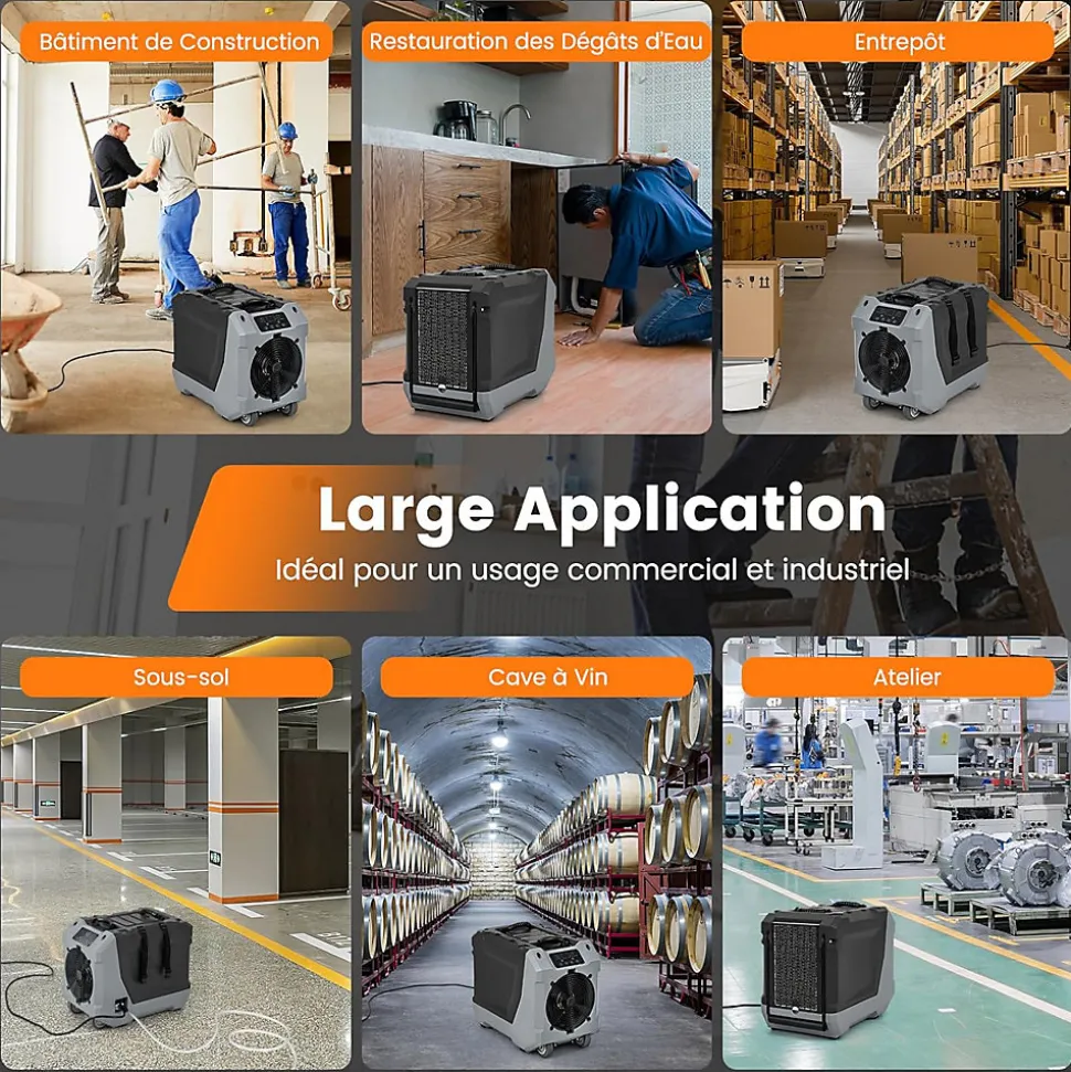 - 4 en 1 & large application : Doté de 4 fonctions : Nettoyage, Déshumidification, Ventilation et Dégivrage. Que vous travailliez sur un chantier ou que vous gériez un entrepôt, une cave ou un bâtiment, vous pouvez déplacer l’appareil facilement d’un endroit à un autre.