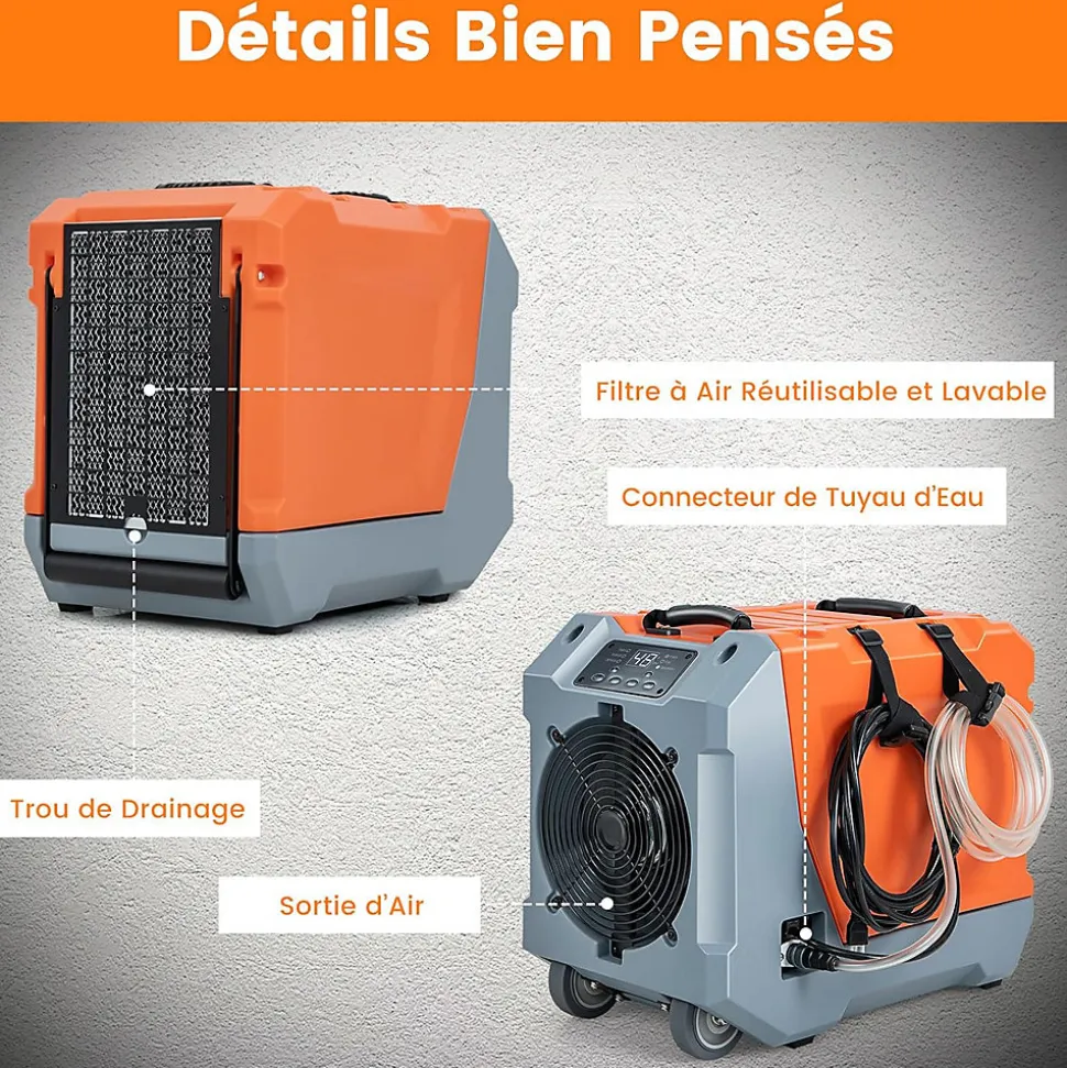 - Détails conviviaux: Notre déshumidificateur est conçu pour être conviviaux, avec un filtre amovible et lavable et 2 sangles pour ranger proprement les câbles et les drains. Ce design convivial garantit un entretien facile et améliore la convivialité globale de l’appareil.
